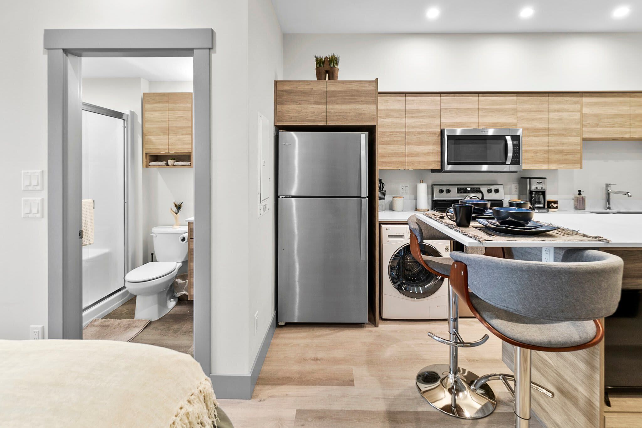 The property features 2 bedrooms. The property also features in suite washer and dryer. The bedrooms both contain a queen size bed, and both bedrooms have a smart TV in each room.