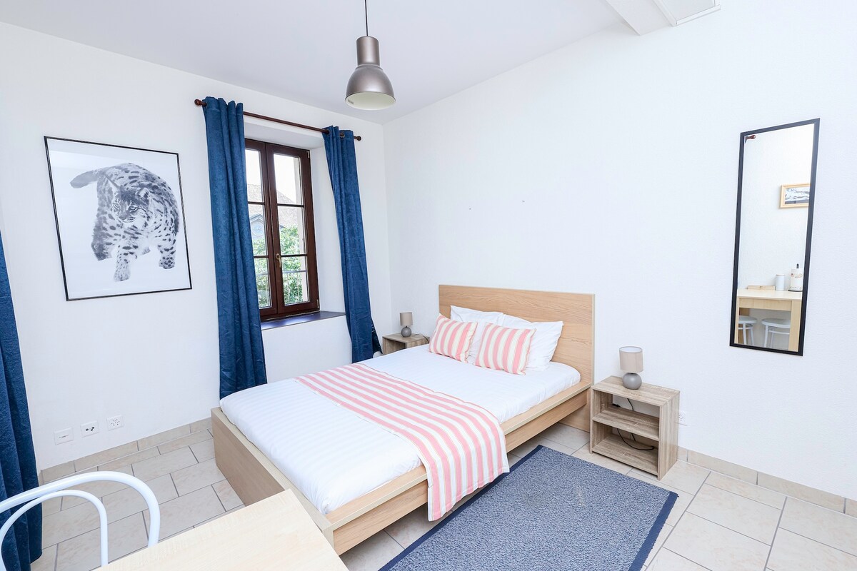Beautiful room in my cozy apartment in Vevey, close to Lake Geneva. The apartment is bright, well located, with an equipped kitchen, a shared bathroom and a nice little living area for reading or chilling.
