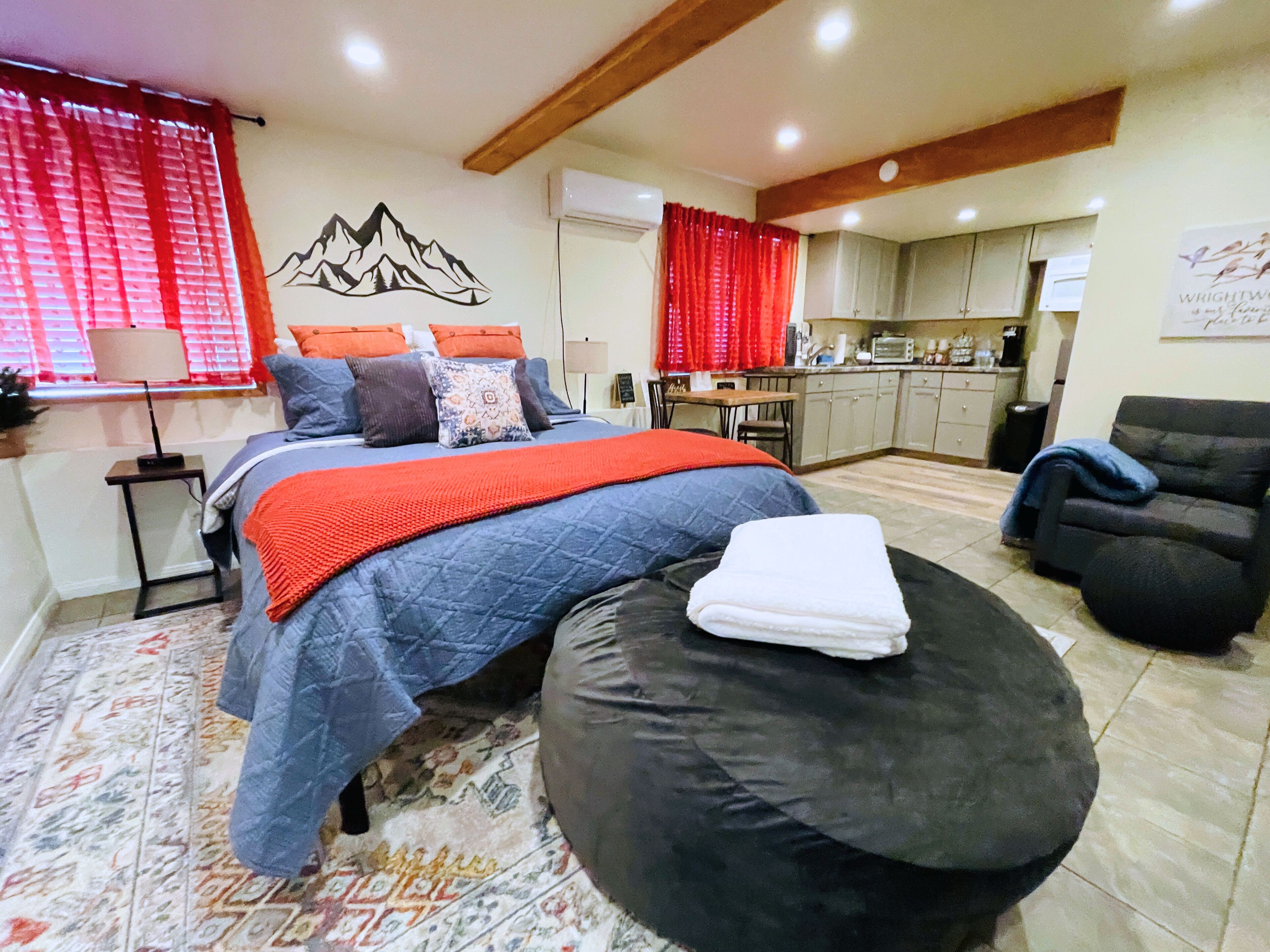With a comfortable living space featuring a queen bed this charming space is perfect for unwinding after a day at work or exploring.