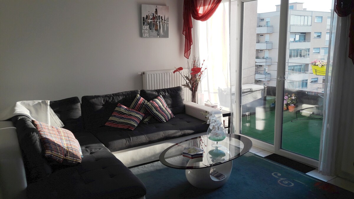 Balcony of 6 m² (with table and 4 chairs), very clear view (some days, you will even have the chance to see the Mont Blanc) and without vis-à-vis, no windows on the street.
