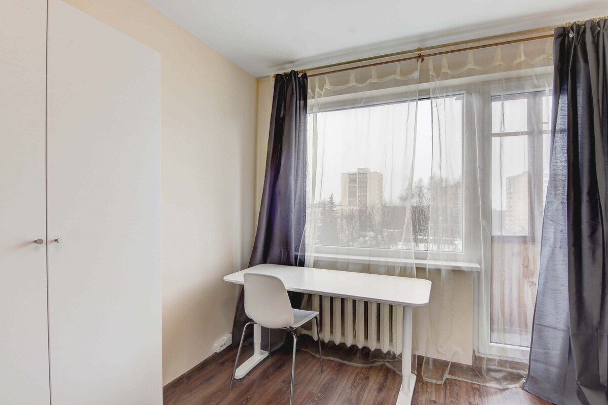 The room has a comfortable sofa bed, all necessary household appliances, large wardrobes for things, balcony, workspace.