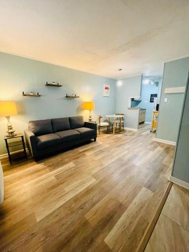 Full sized kitchen, 1 queen bed, 1 twin air mattress and couch. Dinning table to have your meals. Keurig coffee machine available for your use.
