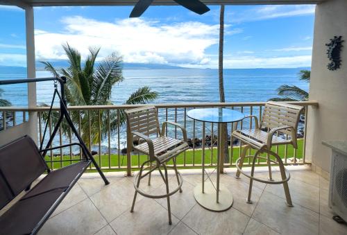 Kanai A Nalu 108 is a 2 bedroom/2 bath ground-floor condo with wonderful ocean views. One bedroom has a King-size bed, the other has twins, and the living room has a sleeper sofa that makes the unit suitable for up to 6 guests.
