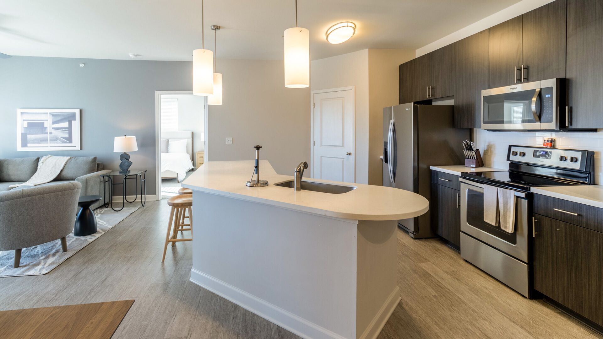 The Pointe at Heritage is a popular property where Landing offers fully furnished 1-bedroom, 2-bedroom, and 3-bedroom apartments stocked with everything you need to feel at home.