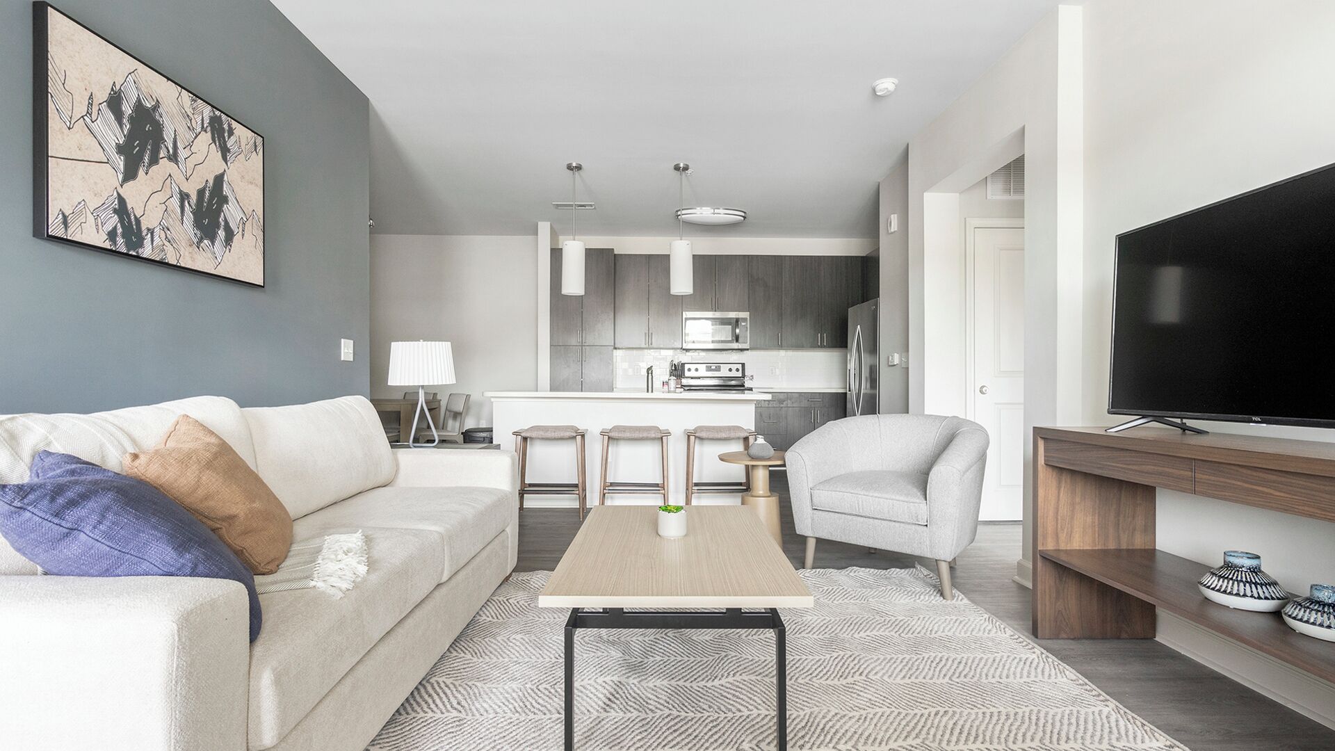 The Pointe at Heritage is a bustling property where Landing offers fully furnished 1-bedroom, 2-bedroom, and 3-bedroom apartments stocked with everything you need to feel at home.