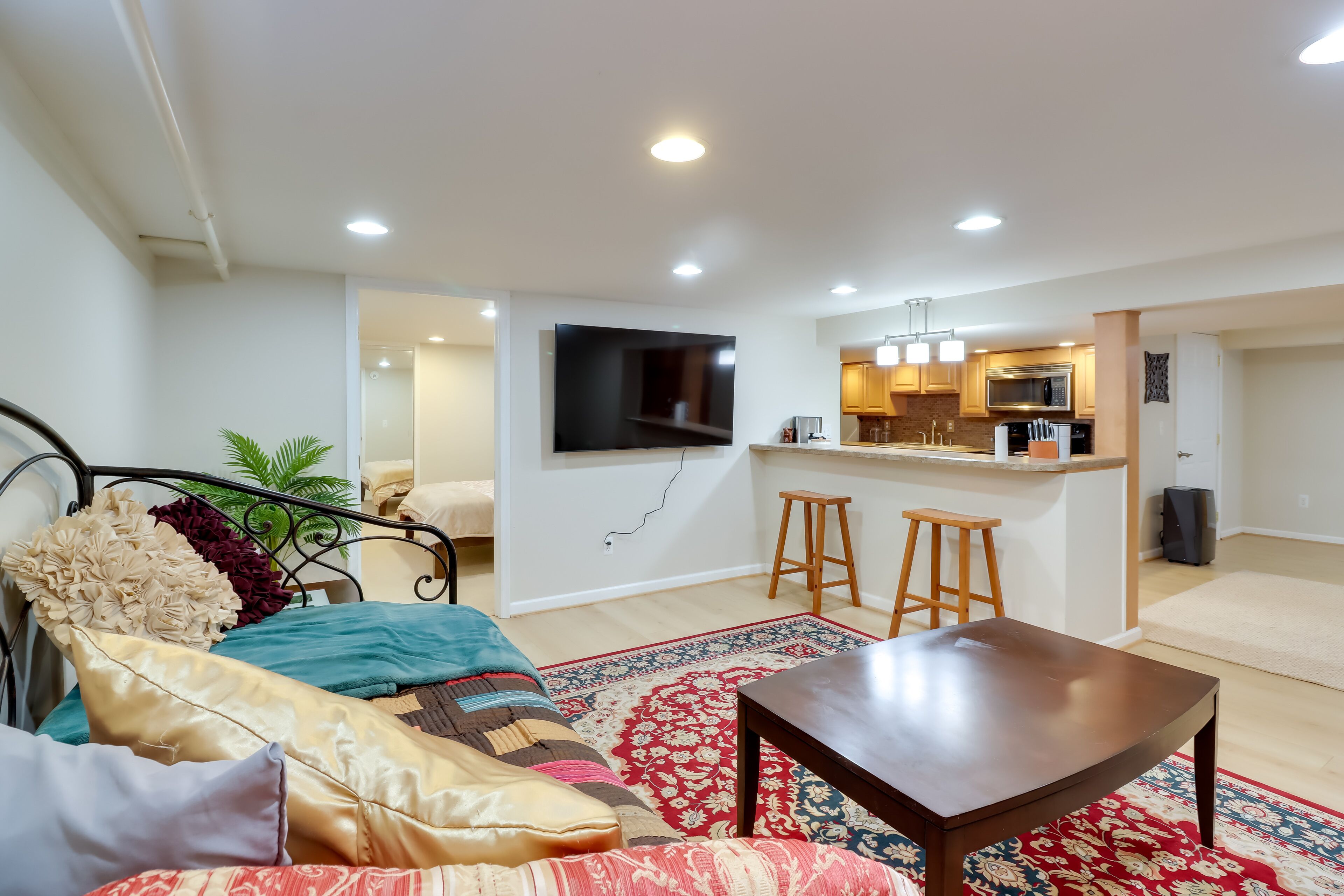 Welcome to our brand new (Feb 2024 build), modern in-law suite, ideally located in a lovely community less than a 5-minute drive from regional parks, shops, grocery stores, restaurants, and more in Waldorf and La Plata, MD. This unit features an open space plan with a fully equipped kitchenette and all the essentials you need for a comfortable stay. The bright & airy living room has a comfy pull-out sectional sofa and a 55" TV, and the bedroom features a super comfortable king-size memory foam bed. With amenities like a washing machine, AC, and WiFi, you can relax and unwind in this cozy retreat.