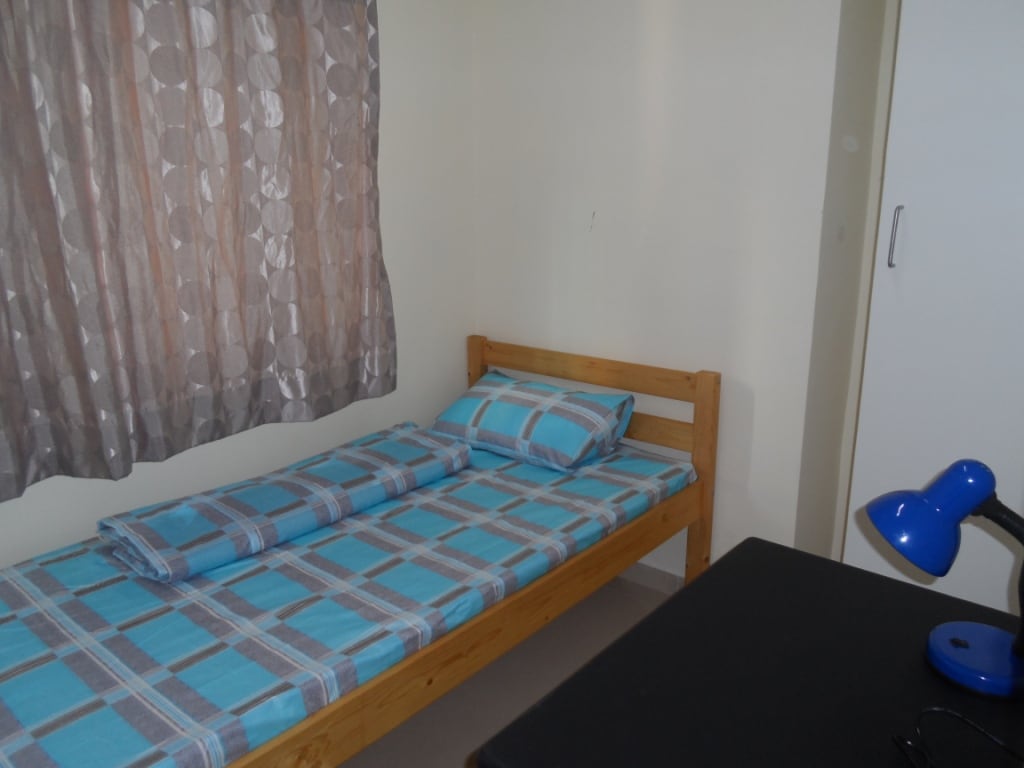 This room equipped with a single high bunk bed measuring 80cm x 180cm and a desk set with cloth hanger at the back of room door! Noted that this room with ventilation fan.
