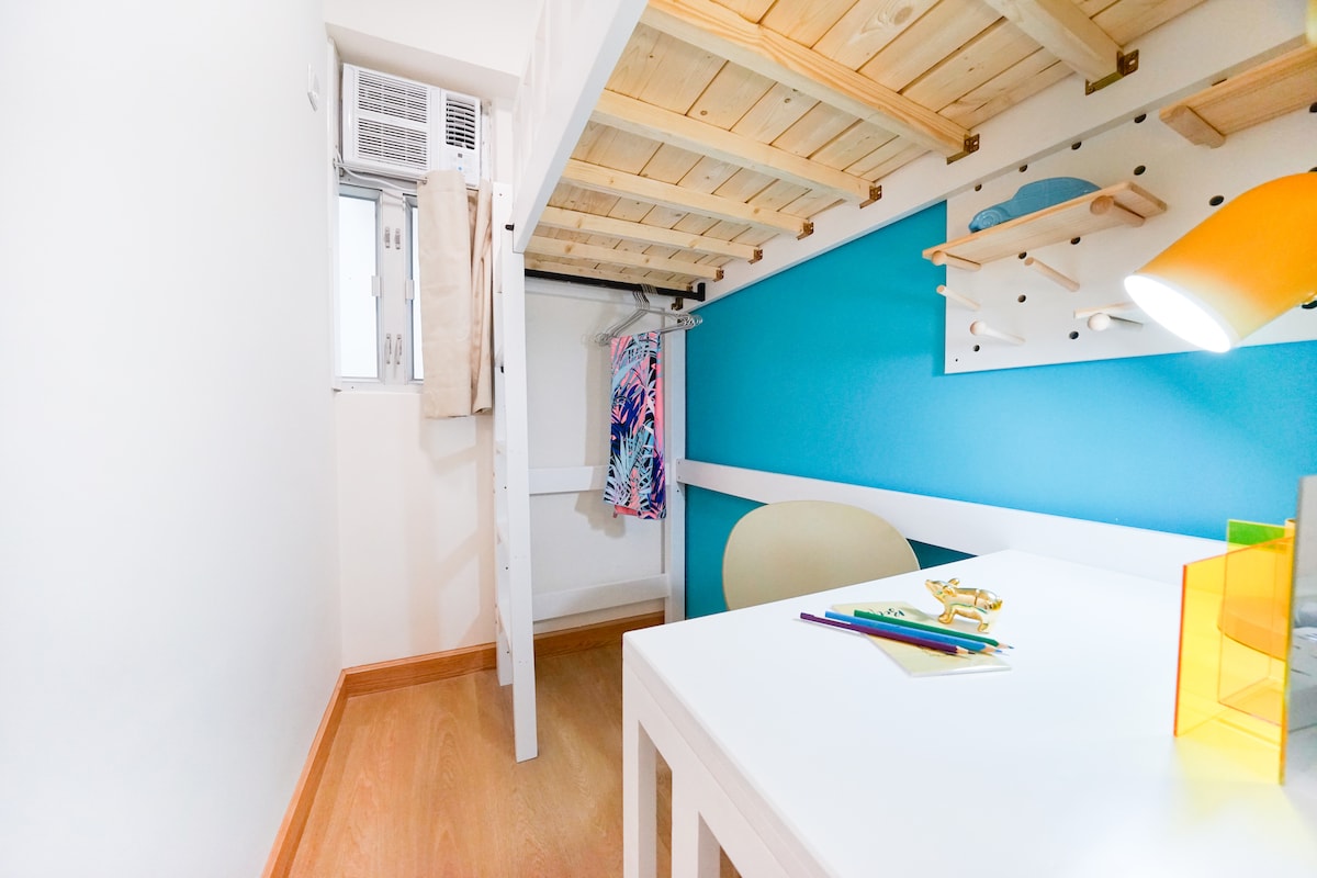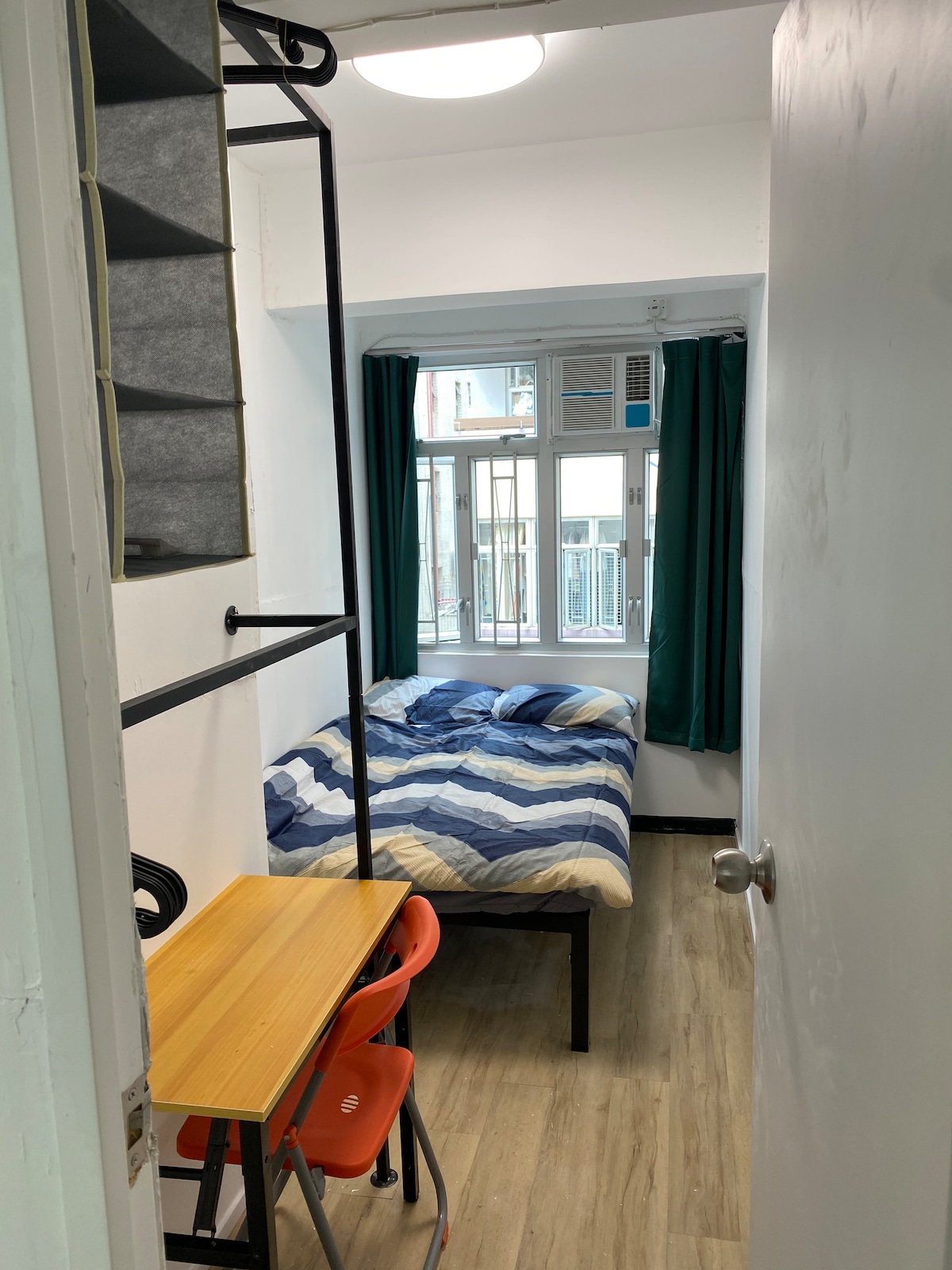 This is our shared dormitory, our Cozy Out-Fitted private room you are looking at is a single bunk air conditioned bedroom with plenty of window with sunshine coming in the room! It equipped with single high bunk bed measuring 80cm x 180cm and a desk set with cloth hanger at the back of room door! This room located at superb location. Just 3-5 min Walking distance to Wan Chai station! It lets you have a convenient spot to explore hk !