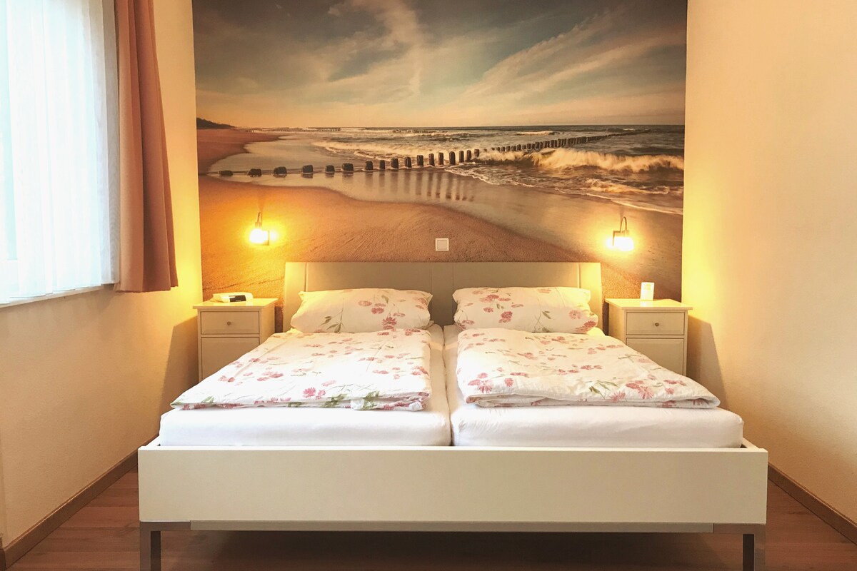 This apartment offers 4 adults and 1 infant up to 3 years (cot) with 2 bedrooms, 1 bathroom, separate kitchen, living room with south-facing balcony and windows to all 4 sides a sunlit living space. The living room has a modern corner sofa with pull-out footrest for comfortable relaxation. Furthermore belongs to your apartment a 20qm guest-own terrace with 2 beach chairs, seating and barbecue. The apartment