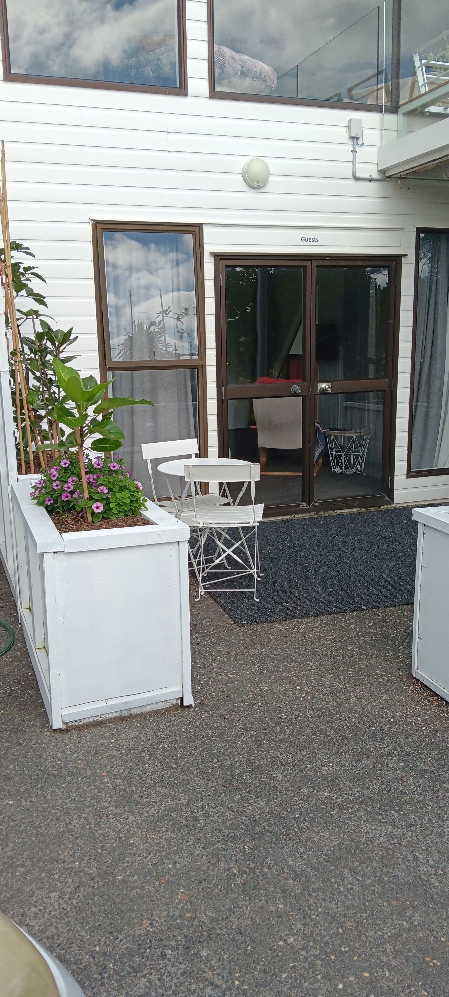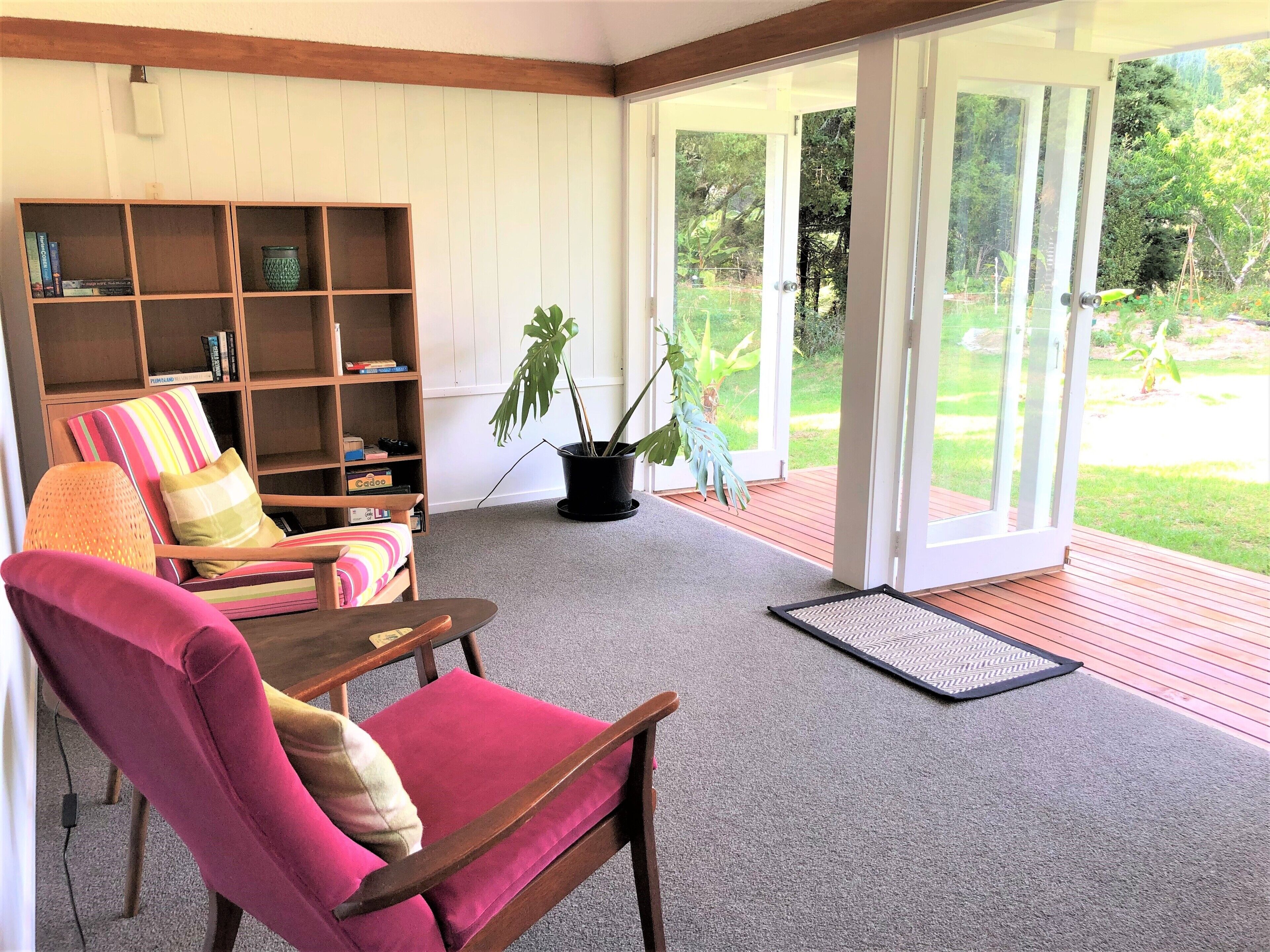 Designed as a self-contained guest suite attached to the main home with it's own private entrance, private deck with a beautiful view of the valley and off-street parking. The lovingly restored home sits on 1.6 ha of native bush and extensive sub-tropical gardens. Michele lives onsite, is available if a request is made, but far enough away for your own privacy. If you wish to be shown around the sub-tropical food forest, she is available for tours. For your information there are family pets on site, two Labradors, Gus and Mika, two cats, Minxy and Marmite and three ducks, Alfie, Mabel and Dolly.