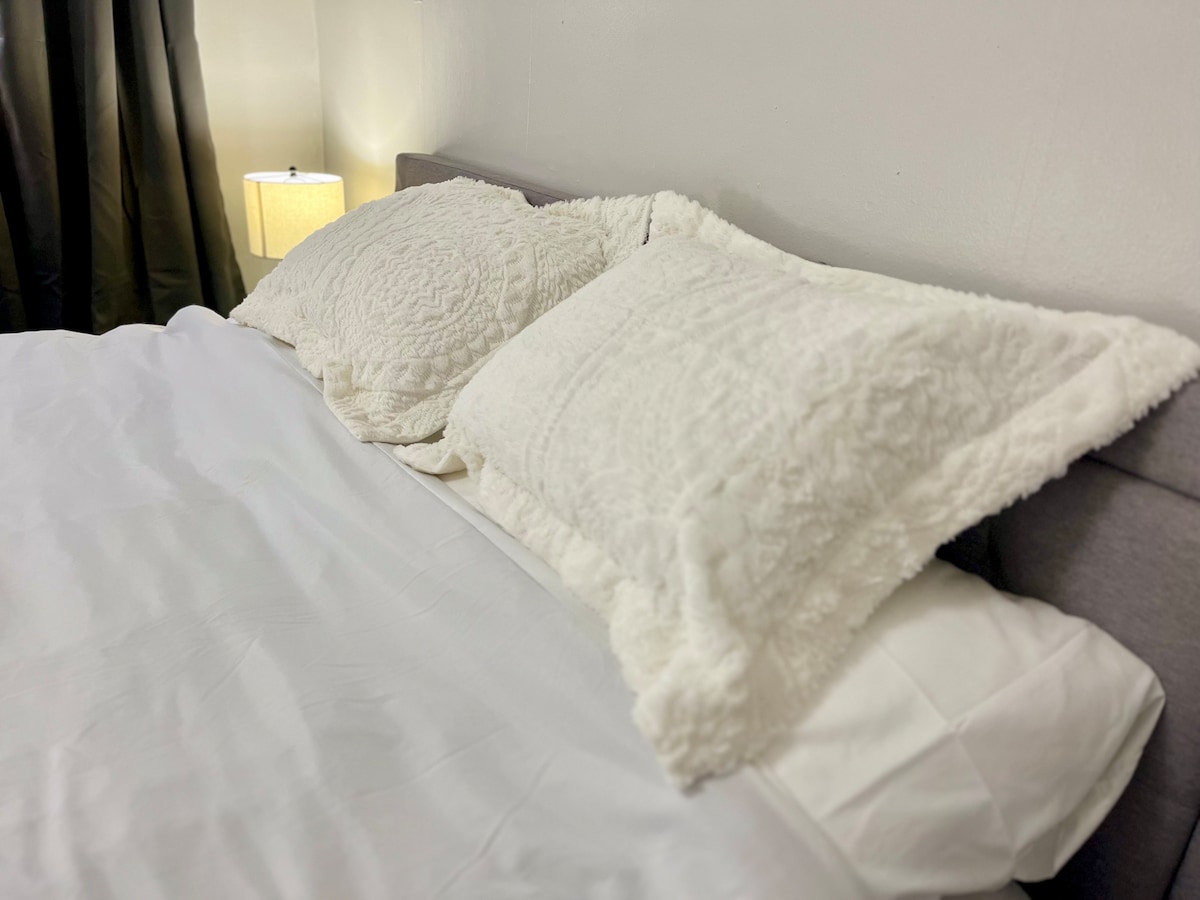 Beds: Each room has high quality linens. Comes with extra sheets to start your stay. Pillows. Duvet covers. Fitted sheet and full sheet equipped for luxury hotel feel.