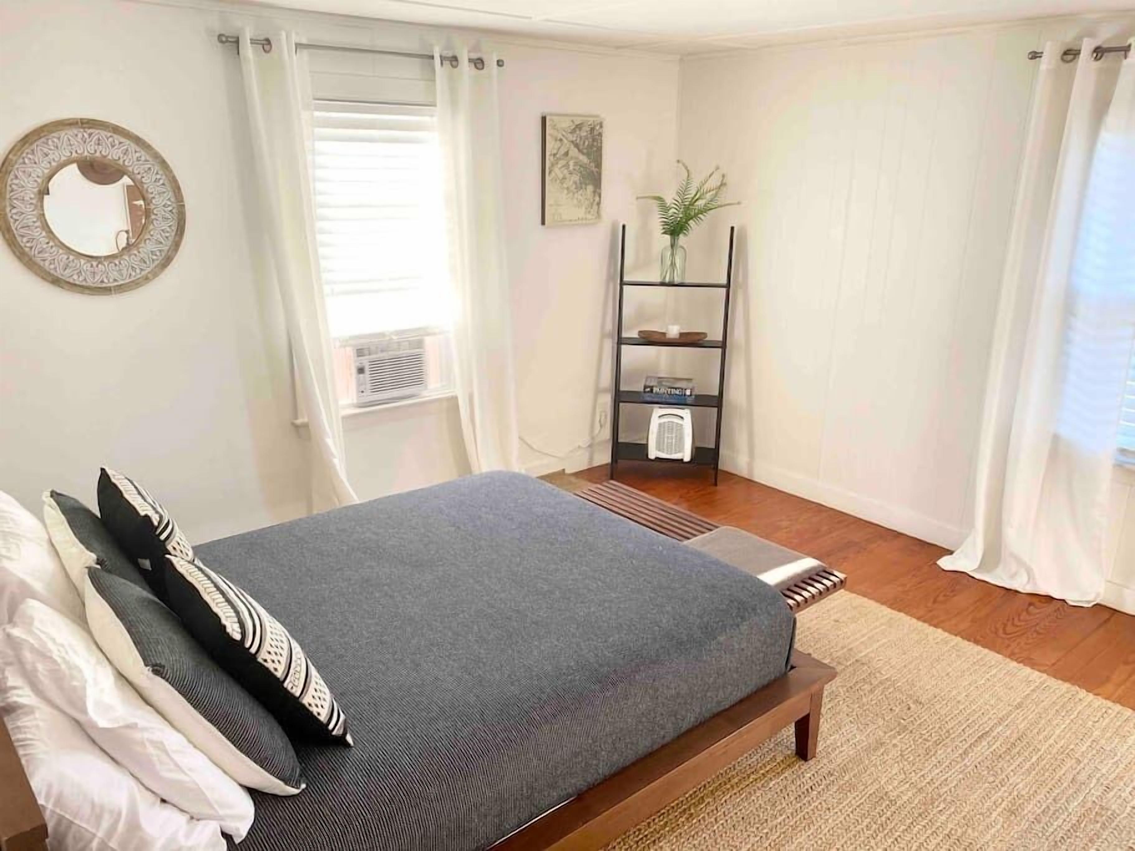 The bedroom invites you to enjoy a comfortable rest on a new memory foam mattress. Equipped with blackout curtains and a Roku TV, this little haven ensures a peaceful and relaxing stay.
