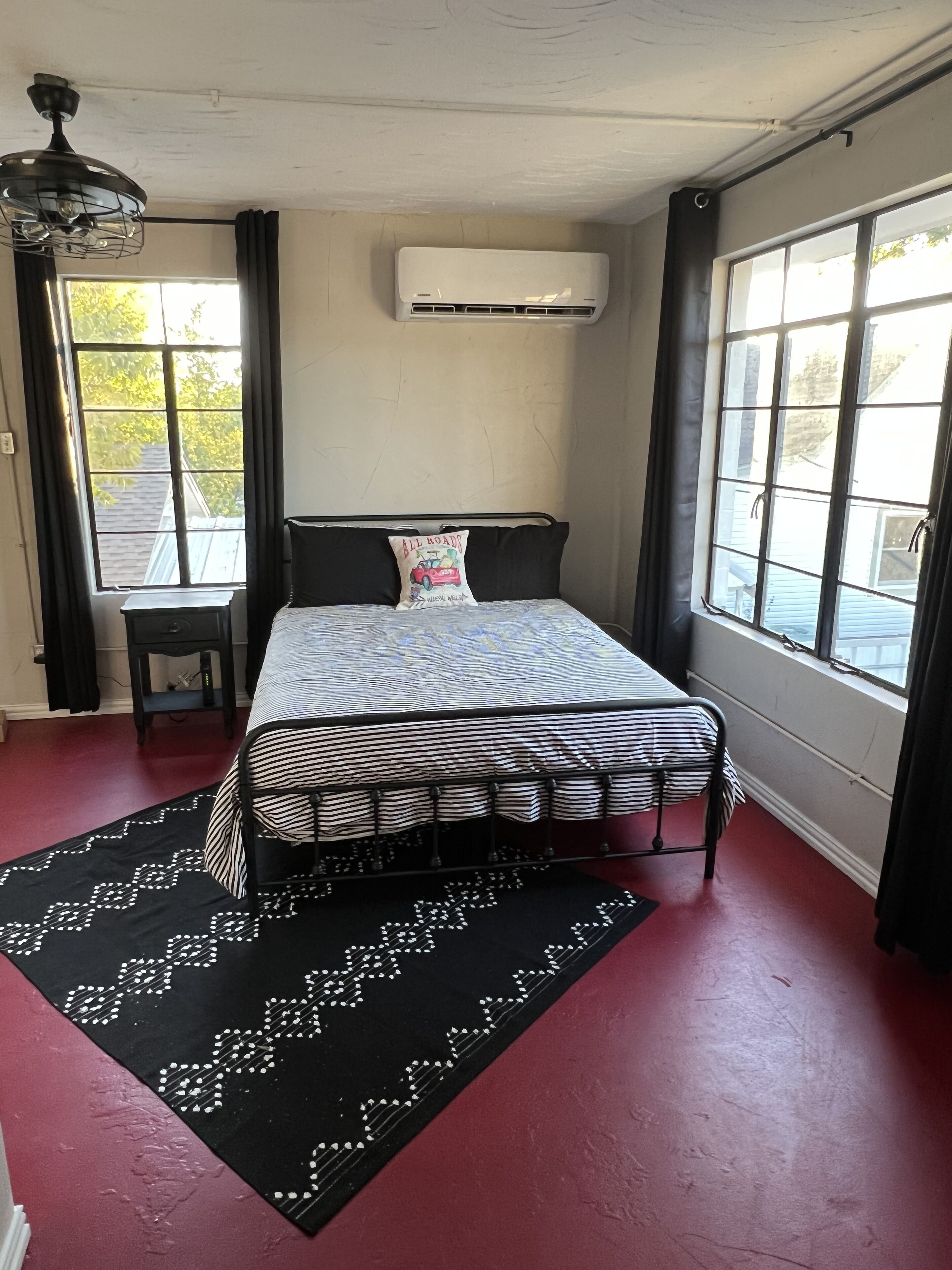 The Loft is a clean, welcoming, newly remodeled upstairs apartment style space. However, please note we do not have wheelchair or elevator access to the space. It has 1 bedroom and 1 full bathroom along with a large living room and kitchenette area. The sectional couch makes into a king size bed. The bedroom has a cozy window reading nook that can also double as a child's bed.