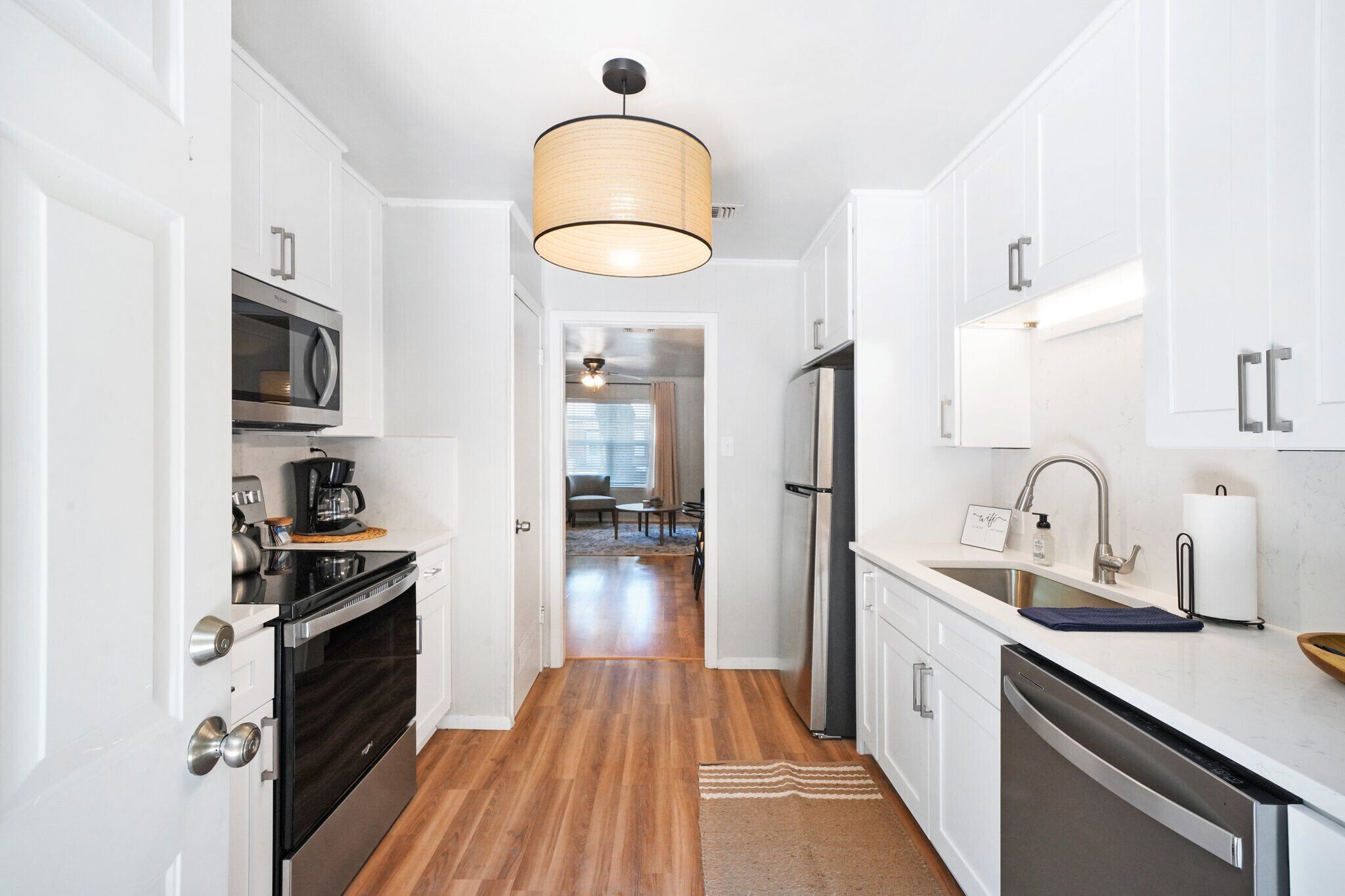 At Landing, every detail is curated to ensure that you instantly feel at home, surrounded by both comfort and style, in any city you choose. Each apartment is fully furnished and has fast wifi, a TV with streaming service, stainless steel kitchen appliances and housewares.