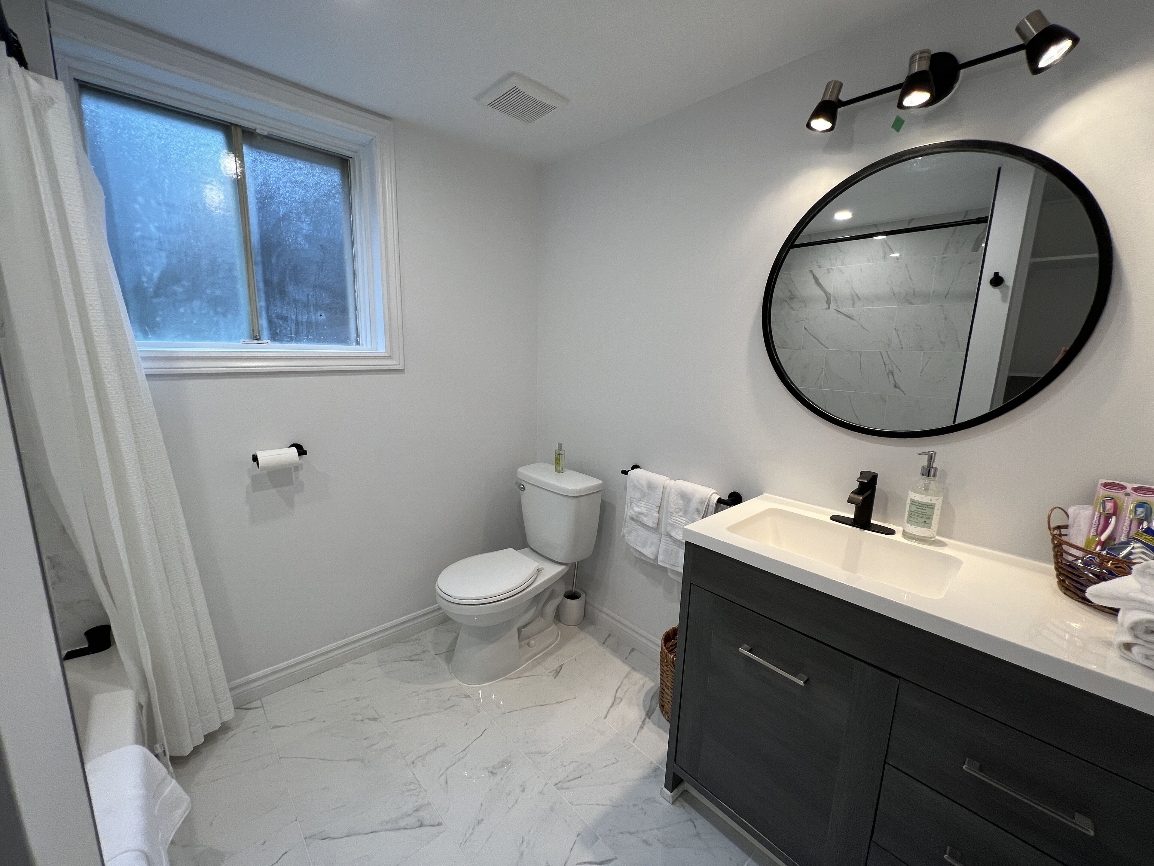 * Bathroom: refresh in the 4 piece bathroom stocked with toiletry basics, towels and hair dryer.