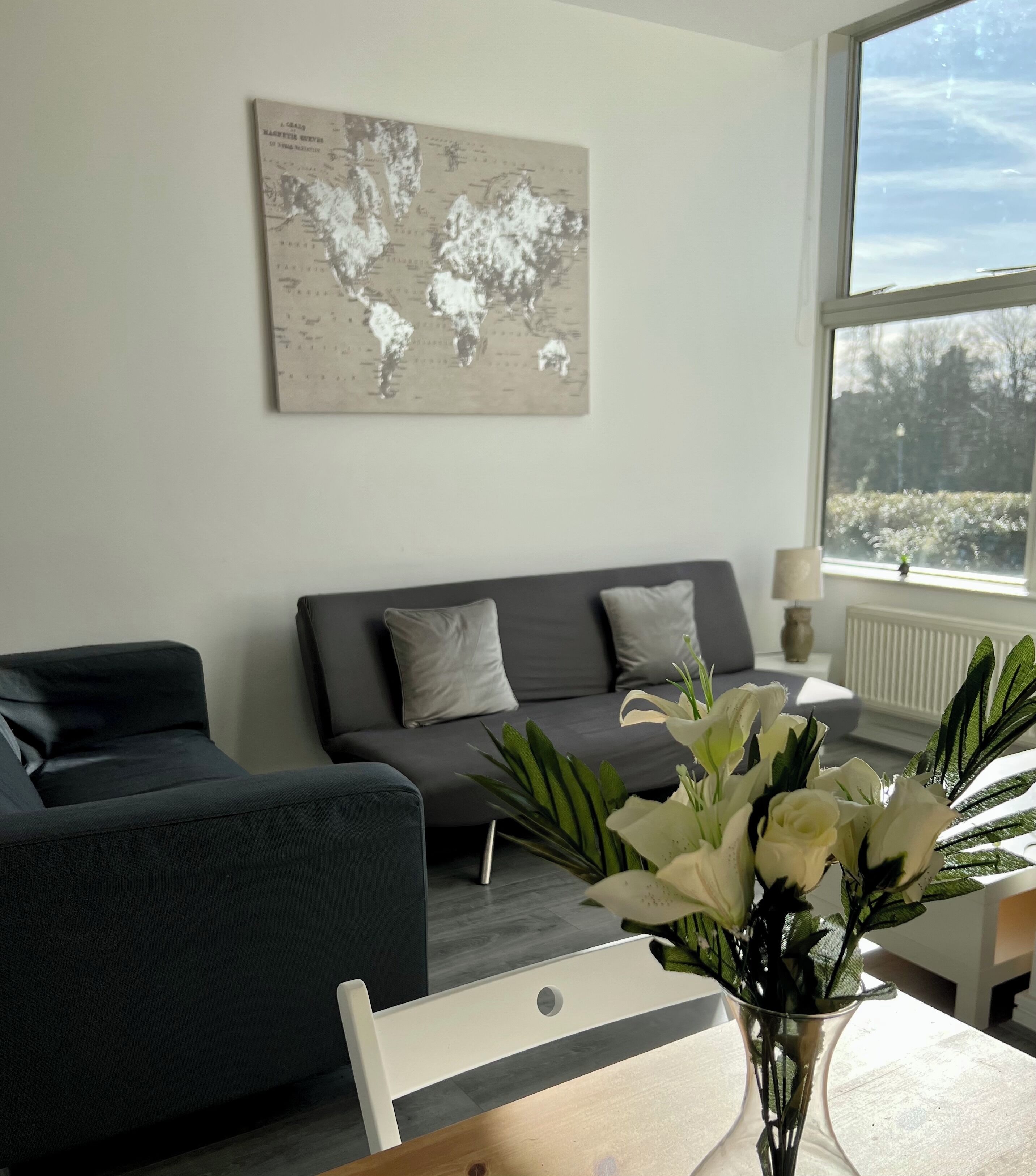 Bring along family and friends to this Beautiful Modern Top Floor Penthouse Apartment, Centrally Located, Boasting a Living Room with Balcony Views, Kitchen, 2 Bedrooms - Master Bedroom with a King Size Bed and En-suite, 2nd Bedroom with 2 Single Beds across from the Large Main Bathroom. 2 Secure Gated parking spaces in a peaceful neighbourhood located Centrally. 5 Min walk from the Train station and Centre. Comes with Wifi, 50inch Smart TV, and cooking utensils. This is Your home away from home