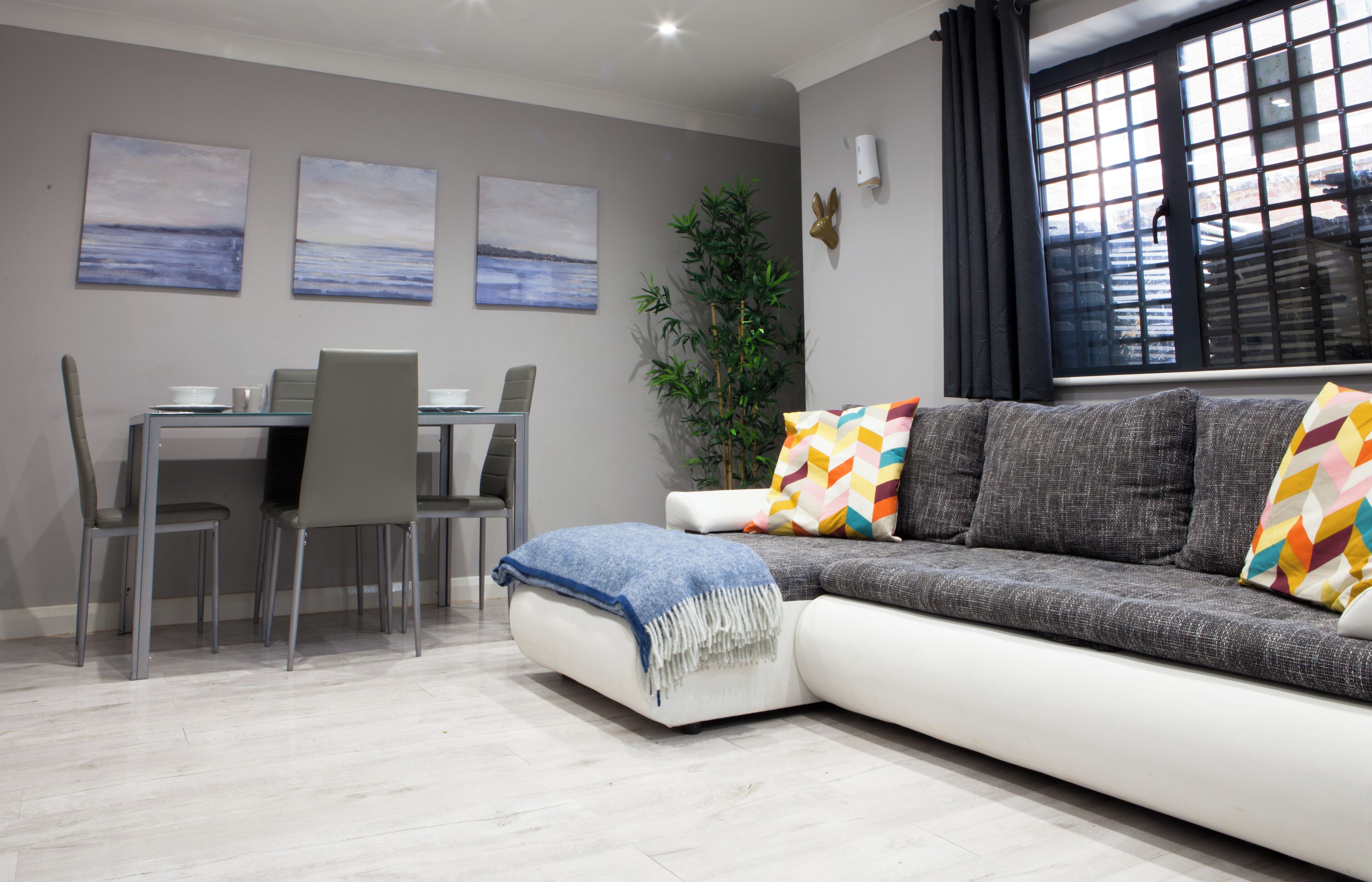 Unlimited Wi-Fi with Smart TV, fully equipped open plan kitchen /dining area to cook your own food with hob and oven. Ideal for business traveler, visitor and contractors as sofa bed can be used to sleep 4 individuals or 5 if shared. Quiet area. Free secure allocated suitable for vans and cars.