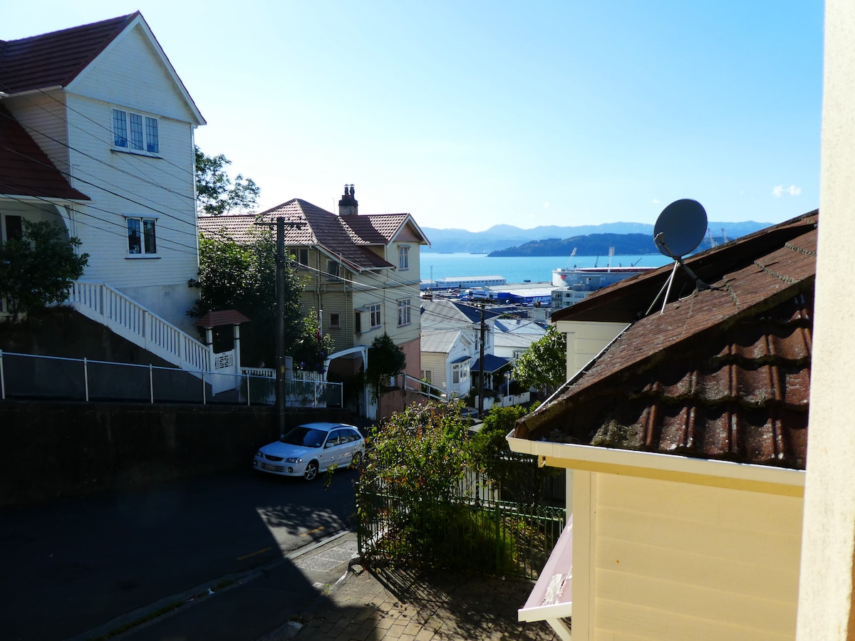 My modern attic apartment is in an historic Villa . Your room has an east, north west aspect so is light, warm and sunny with harbour glimpse and outlook to the hills. The roof window can be open to enjoy the moon and stars. The Villa is within walking of the CBD, restaurants, Westpac sports stadium, the 'Golden Mile' the Te Papa Museum, Parliament and the National Library . Train station, bus terminal only 10 mins walk and stadium right there. Walk home along the waterfront.