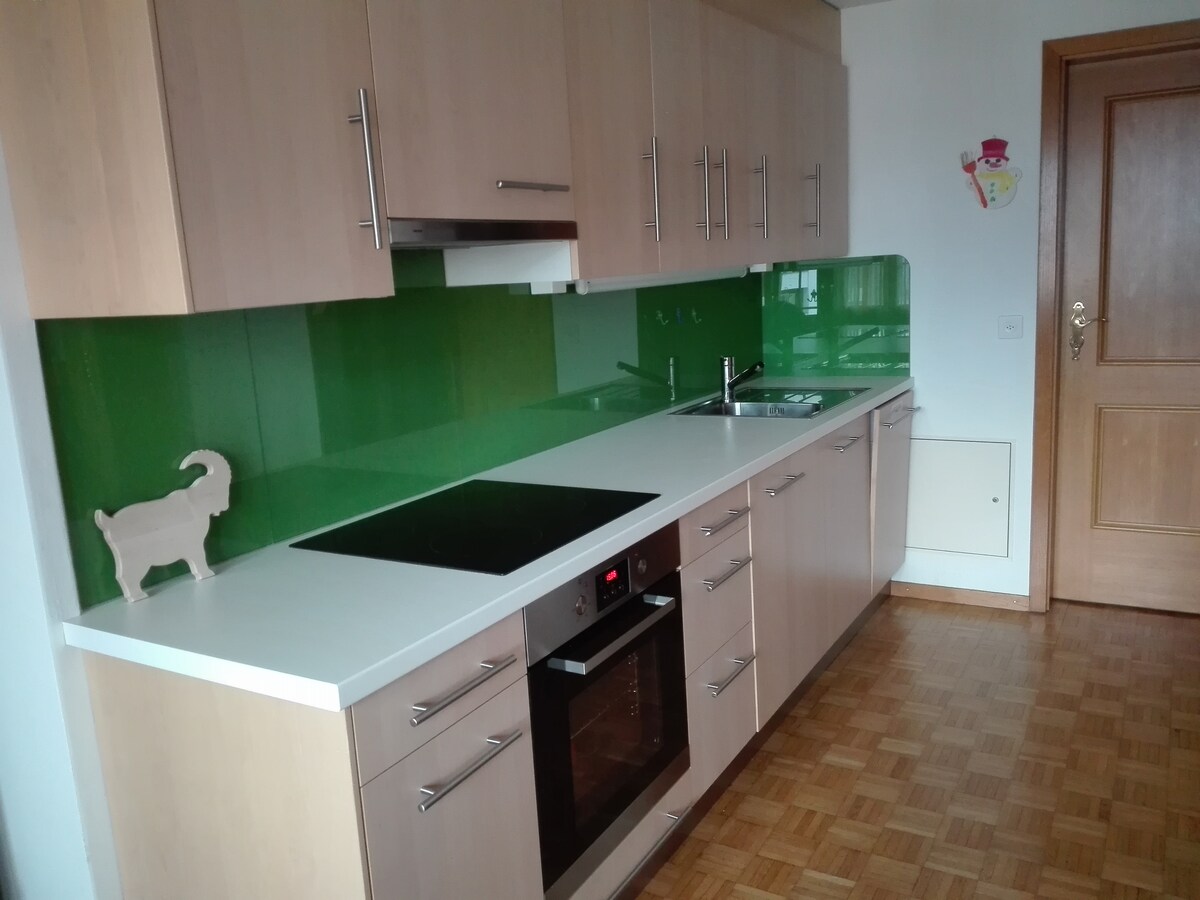 The apartment is quietly located above the village center and in a prime location. The balcony offers magnificent views of the mountain panorama and evening sun. The village road and the train station can be reached within 10 minutes. Sheep often graze next door in the summer.