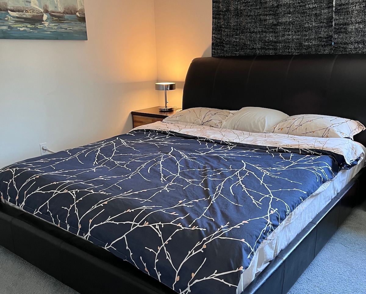 • ROOM #1: The bedroom comes with queen Size bed with a thick hybrid mattress, hypoallergenic sheets. It also features an en-suite bathroom, closet.