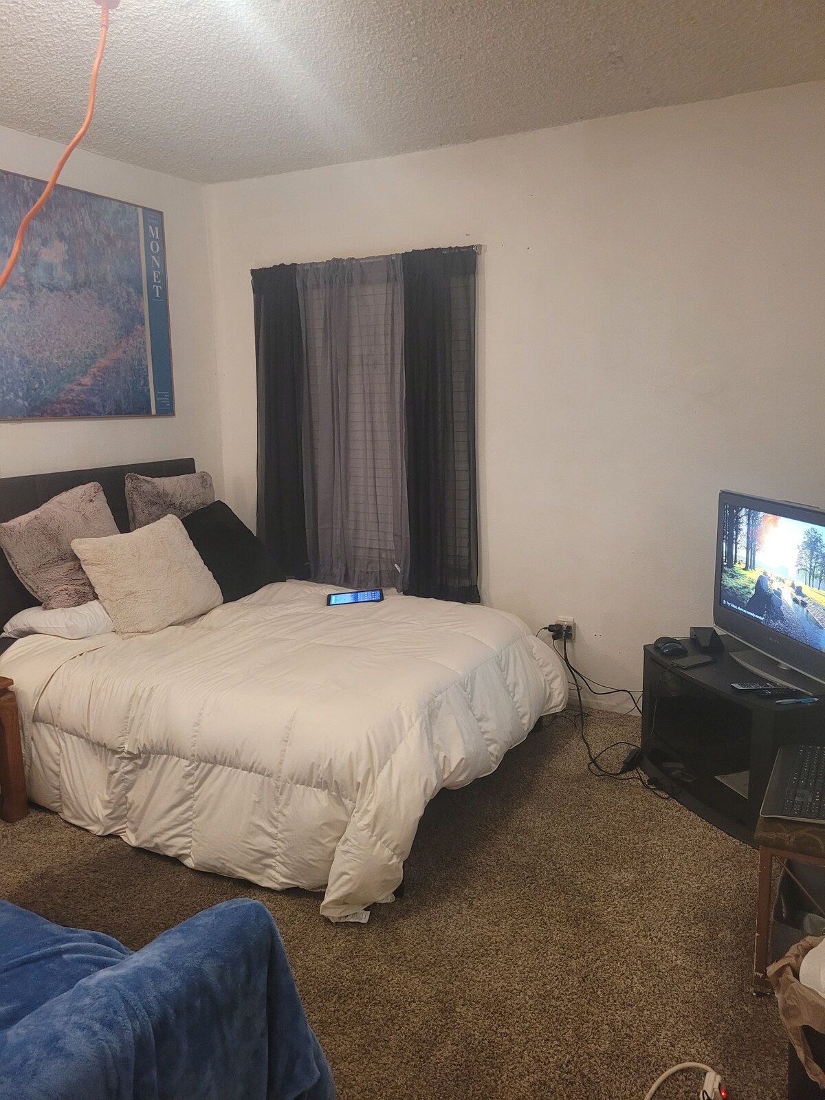 Studio has a kitchenette,Full restroom,studio size with queen bed futon bed and small love seat bed 4 arcades movie projector microwave and popcorn maker ice machine and small fridge Small private patio and access to shared front yard with bbq grill and tree swings.property is a garage converted adu with its own private entrance restroom and small gated patio.