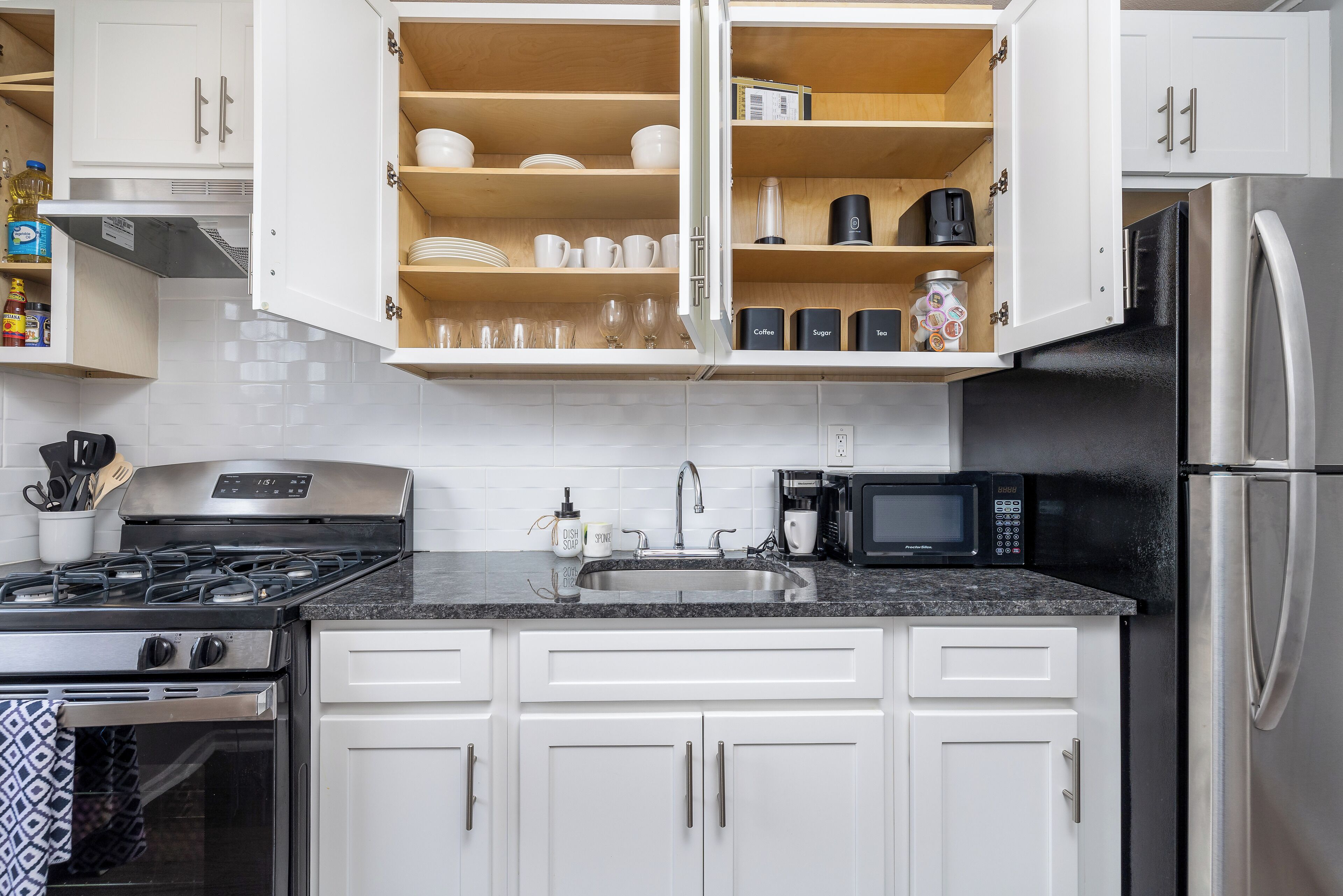 Whether you're cooking at home or grabbing takeout from downtown, the kitchen has everything you need: full-size appliances, cookware, and plenty of space to prep.