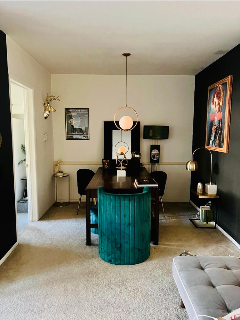 I had a really large living room, so I had the idea of dividing it into two different spaces, by separating them with curtains. I created a private guest room behind the curtains to be able to host travelers.