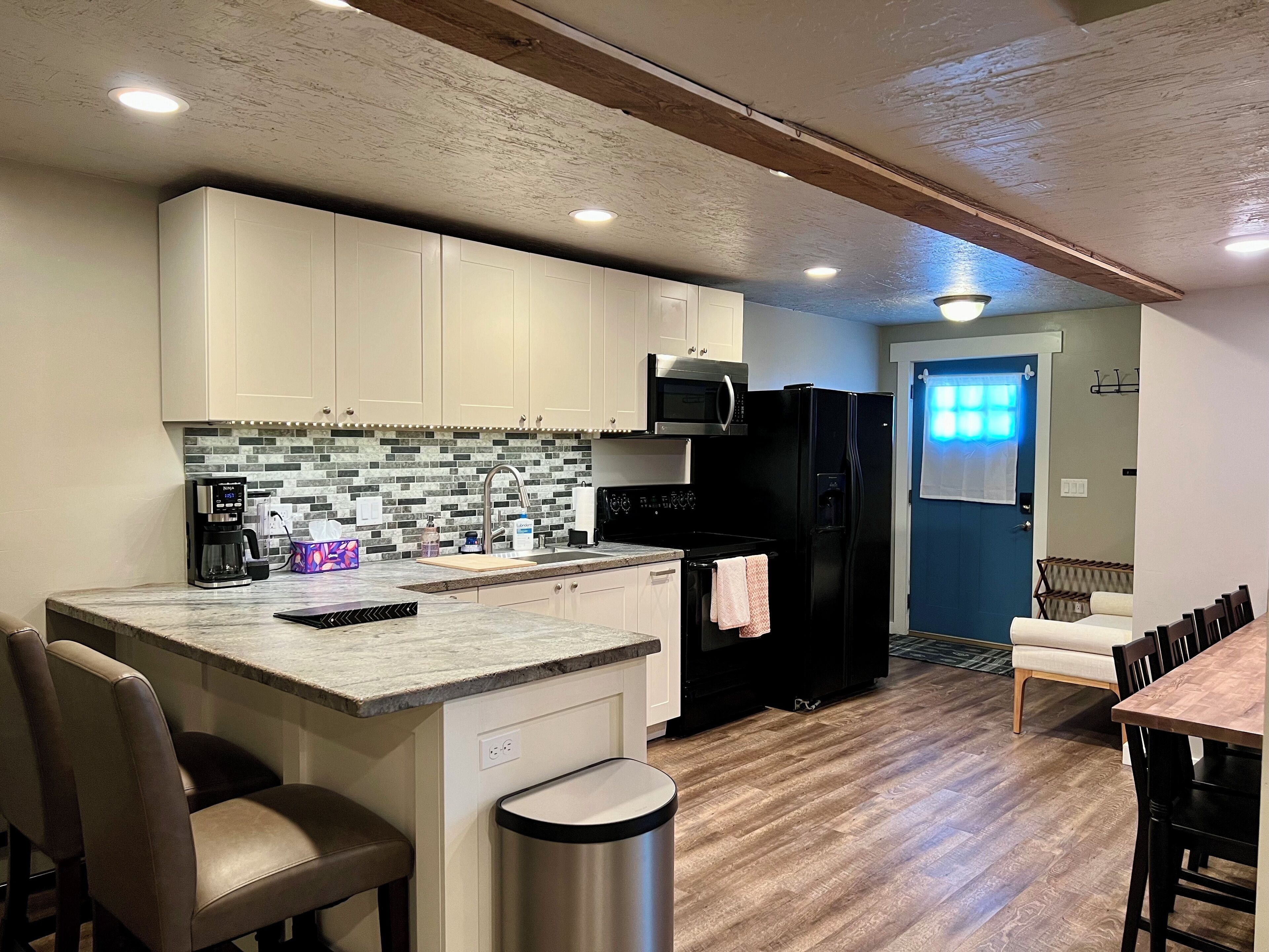 Beautiful basement spot located in West Jordan, UT. This incredible rental has a private entrance to your own relaxing space. The main bedroom hosts a queen bed and a twin over full bunk. Enjoy a cozy living room that also provides a bean bag that converts to full size bed as well. The kitchen hosts a full size fridge, oven, microwave and dishwasher. The bathroom features a full size tub/shower and includes a washer and dryer. Great location with quick access to shopping, outdoor activities, and SLC events. Winter ski vacations, hockey games, U of U sports and more! Summer hiking can't be beat! NO pets. NO smoking/vaping of any kind. If medicinal needs are required, plan for edibles only. Kid friendly space, but is not baby proofed. High chair upon request. Don't miss out on this fantastic getaway!