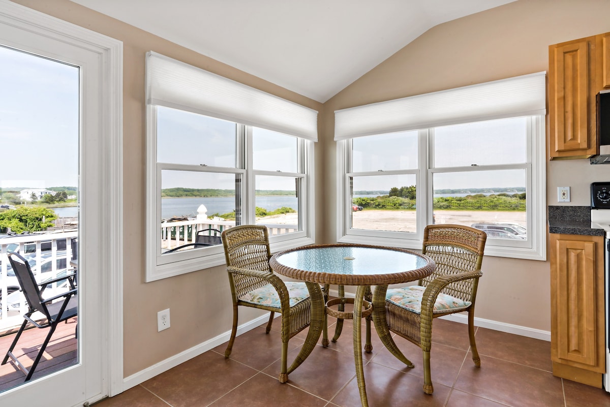 Bird’s Eye View is a private waterfront apartment occupying the entire third floor of our historic house in the Weekapaug area of Westerly. The property sits at the end of Winnapaug Pond, one of the area’s most stunning salt ponds and home to a rich variety of local and migrating wildlife, particularly aquatic birds. Our property is a 15 minute walk to the oceanfront and short drive to downtown Westerly, a vibrant hub with eclectic dining, small boutiques, live music and cultural events.