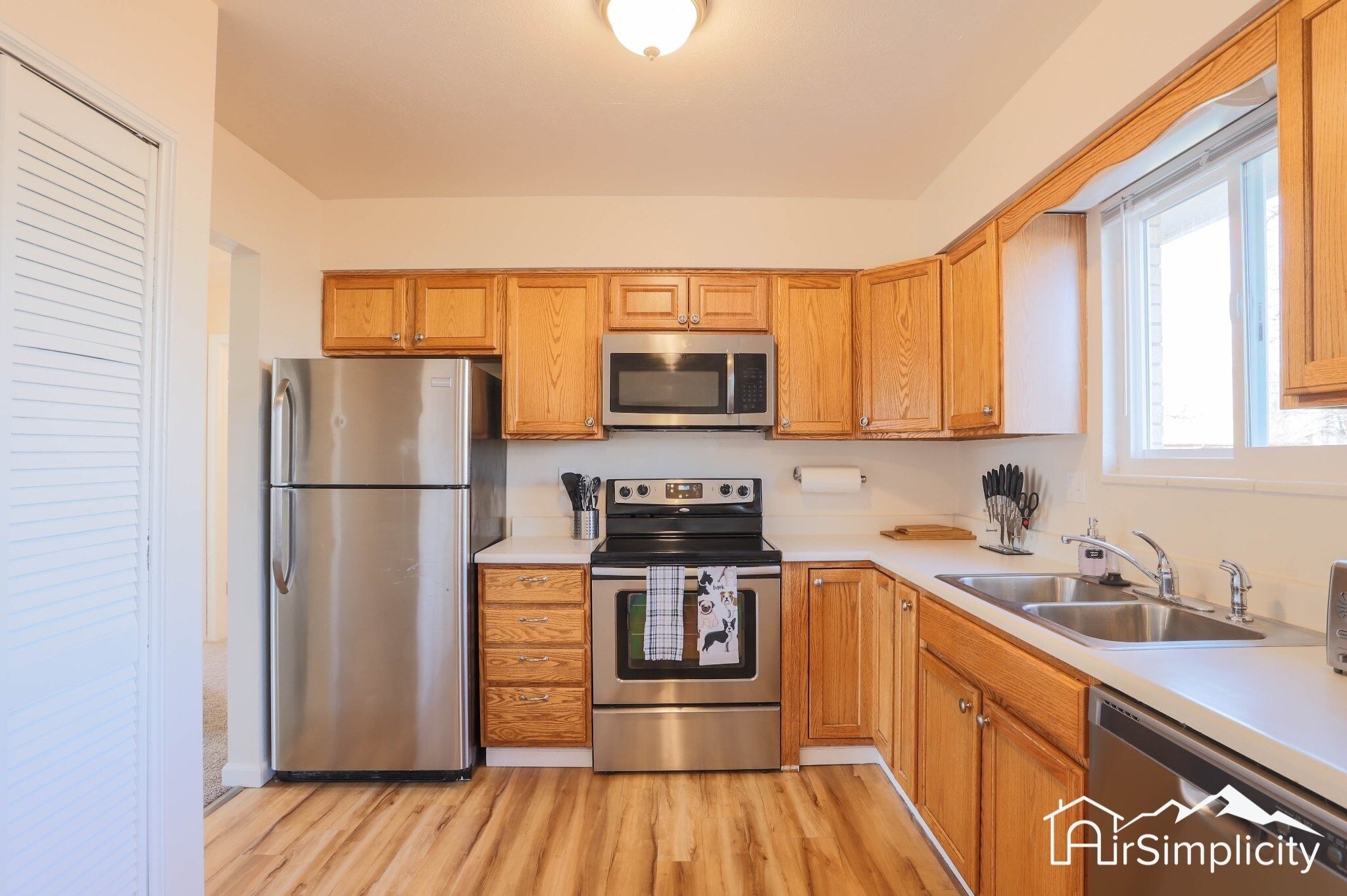 The fully fenced yard creates a private, relaxed outdoor space just for your group. Sip your morning coffee at the patio table, sink into the hammock with a good book, or grill up dinner while enjoying yard games like corn hole. A hanging chair and outdoor seating complete the picture - perfect for soaking up Colorado’s sunny afternoons. While some furniture is stored in the winter, the space remains usable and peaceful year-round. Parking is easy, with space for two vehicles in the driveway and additional street parking available.