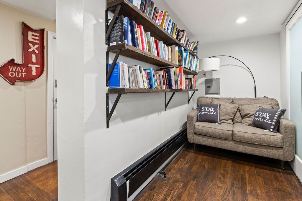 This unit offers fully self check-in, with an access code provided for the front door. You’re welcome to park on the street in front of the building or in our parking lot to the left by the flower mural. Although the lot is marked for 2-hour parking, this restriction is not enforced.