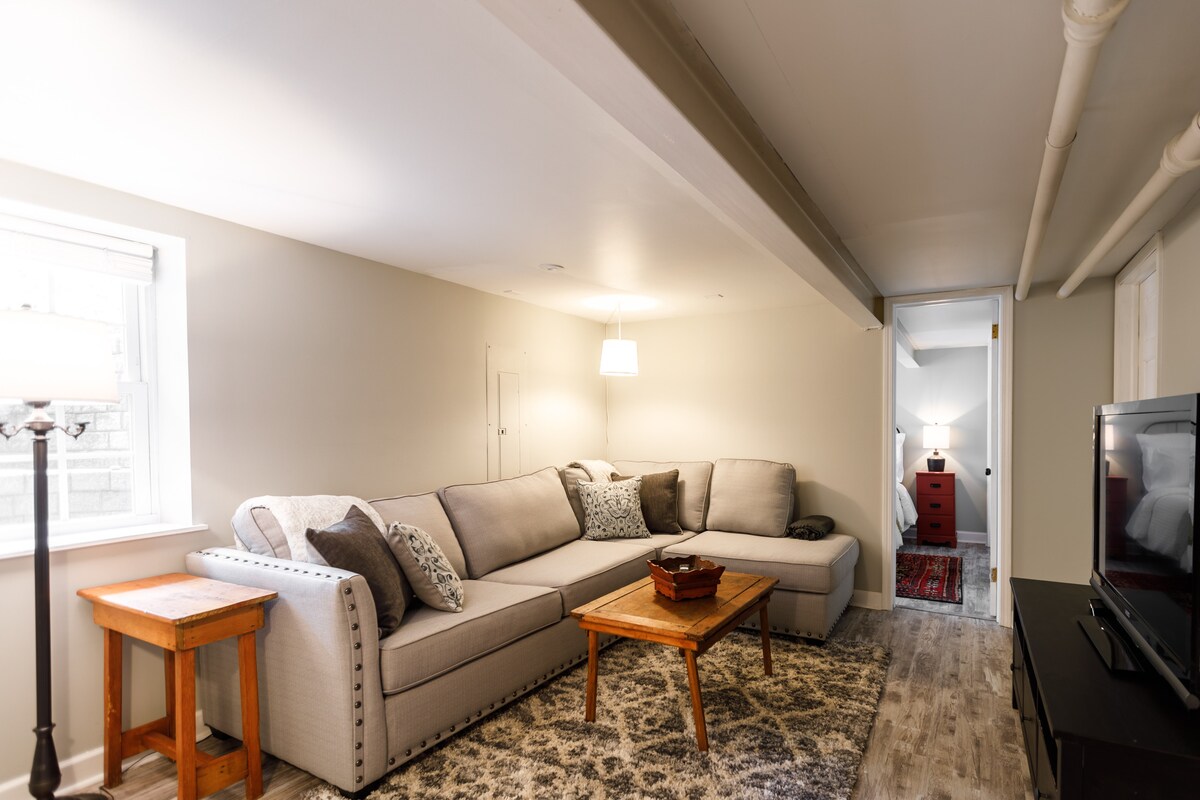 Newer private 1000sf private house apartment. Fully furnished including KING SIZE BED, washer dryer, cable/Wi-Fi and all utilities. SS kitchen appliances, garage use for bicycle or golf clubs. Secure driveway parking. 9 ft ceilings. Perfect for elderly couples wanting to escape the humidity of Florida or Arizona during the summer months. 30 day minimum booking. Pricing discount on longer than 30 days already applied. Stays are 30 days or longer.
