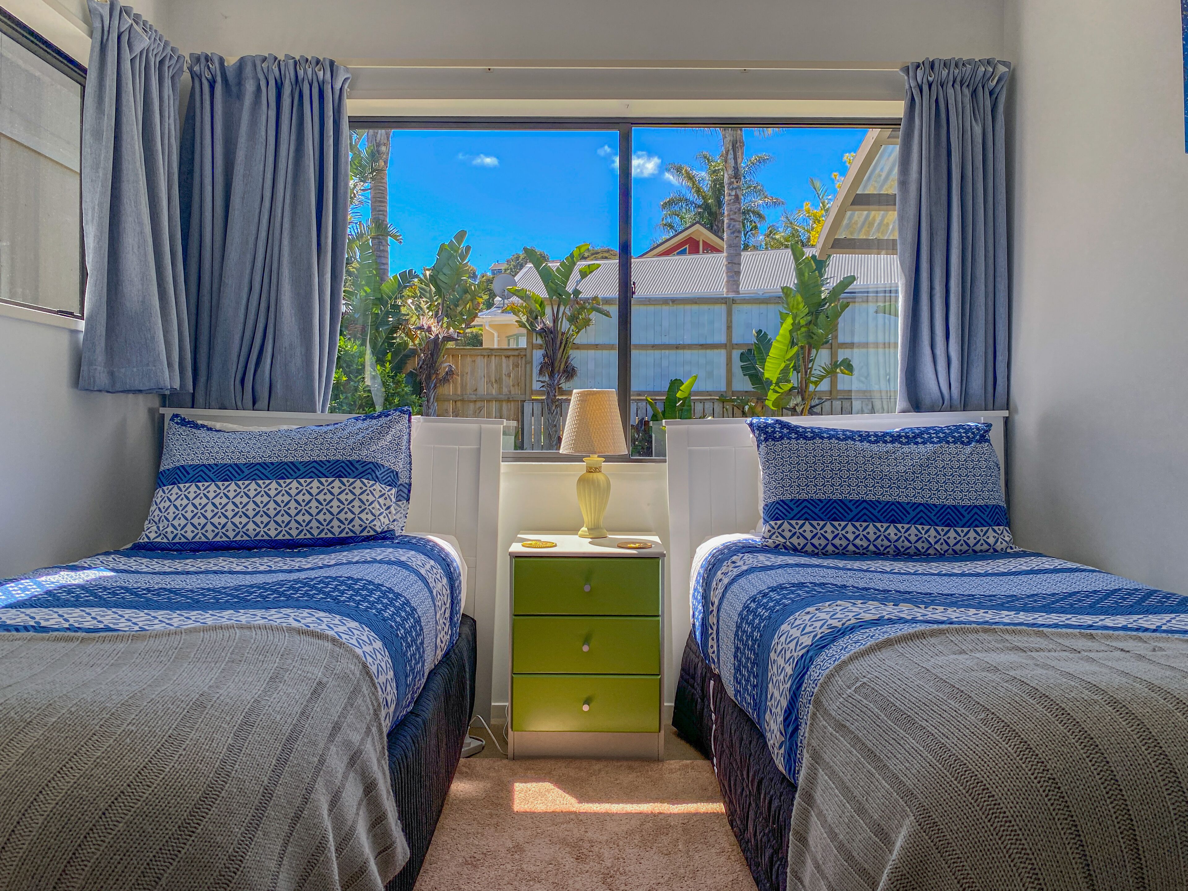 Villa 4 is a 2 bedroom, 2 level villa with stairs. An open plan kitchen/living room which opens onto an outside deck where you can sit & enjoy the beautiful. Mercury Bay. This is a 2 level Villa with 2 bedrooms & a bathroom upstairs including a WC & a separate WC & WHB downstairs. The kitchen is equipped with modern appliances, Fridge/freezer, oven, hob cook top, microwave oven, jug/kettle, toaster, cutlery, utensils. There is also washing machine downstairs. Free Wifi, freeview TV, Smart Tv, Netflix & DVD player. There is outdoor furniture & a BBQ on the ground floor deck. Guest have full use of the pool & spa pool. Less than 100 meters to the beach great for swimming from mid to high tide & very safe for kids. Spade available to take to hot water beach. Infant portacot. Chilly bin/cooler/eski for your use please return these items so other guest can enjoy them. Heatpump downstairs. Maximum of 5 guests this includes children and infants. 30mins walk to Whitianga township. This is not a managed complex there’s is no reception. Read your check institutions issued on here.