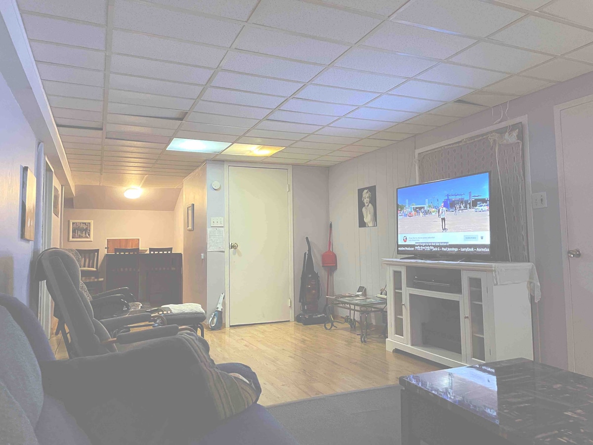 Welcome to this modern 2-bedroom basement suite! One of the bedrooms is spacious and thoughtfully designed with a dedicated work area and an extra monitor, making remote work a breeze. The living area features a cozy setup with a 55-inch TV and access to multiple streaming services for your entertainment. The suite also includes a dining and kitchen area fully equipped with essential amenities, plus complimentary snacks and drinks. The bathroom is pristine and stylish—just what you’d expect from a newly constructed space. Relax and enjoy your stay in this comfortable and well-appointed retreat!