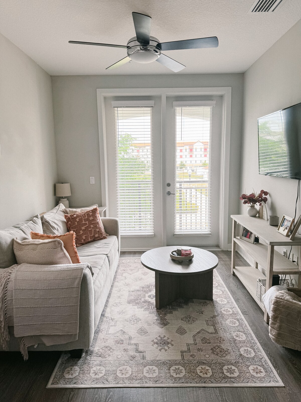 Relax, recharge, or get a little work done in our warm and cozy living room, where comfort meets function: