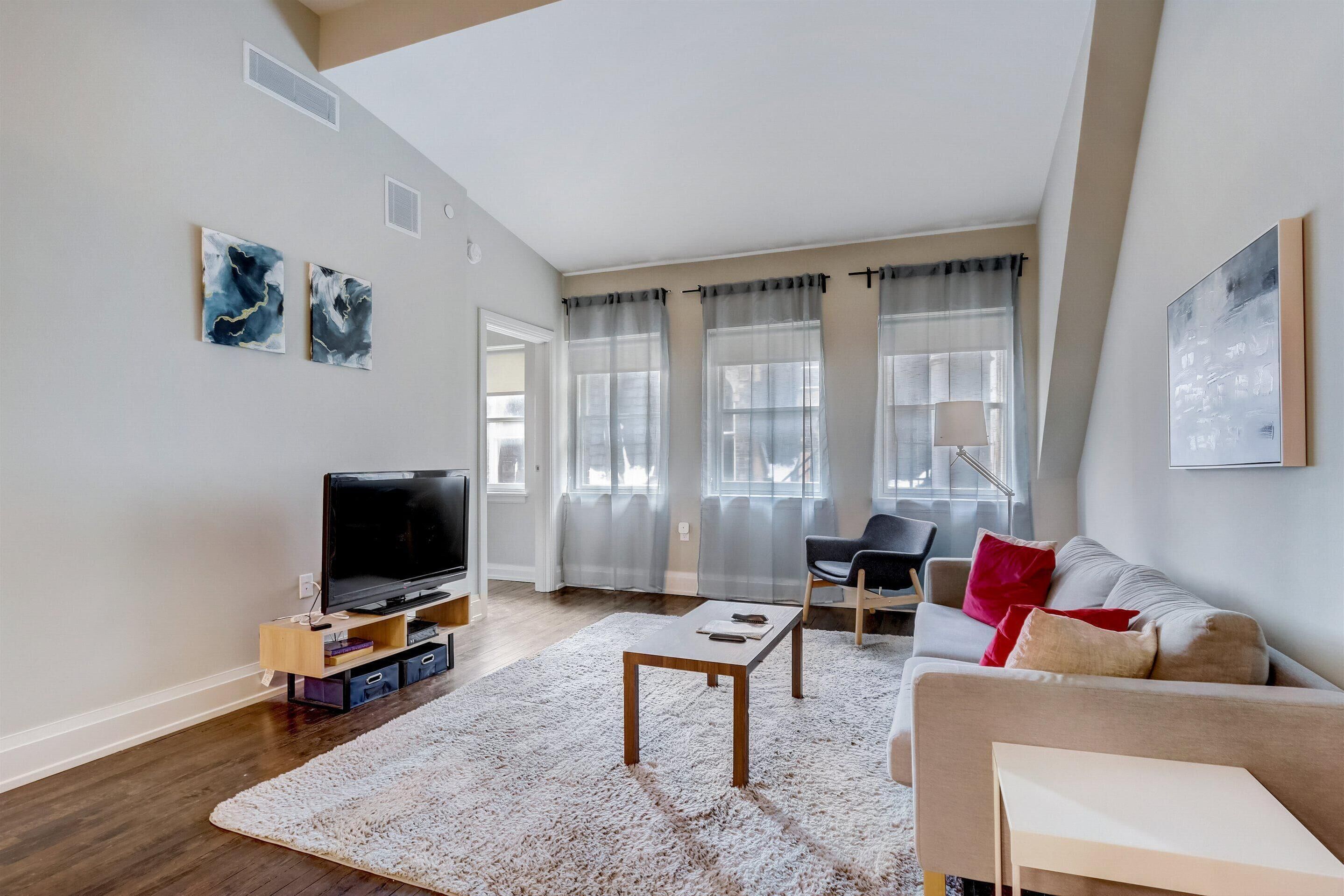 - "Great stay. Property is clean, comfortable, and modern. The communication with staff is beyond excellent considering the staff is off-site. " - "Apartment was great, the only thing I did not like was waiting for someone to answer the downstairs front door each time we came back to the apartment, it was cold and raining when we came back the third time and had to wait yo buzzed in, I also felt like it was a safety concern because it was two women at night trying to get in, if possible there should be a key fob left that can get guest into building faster. "