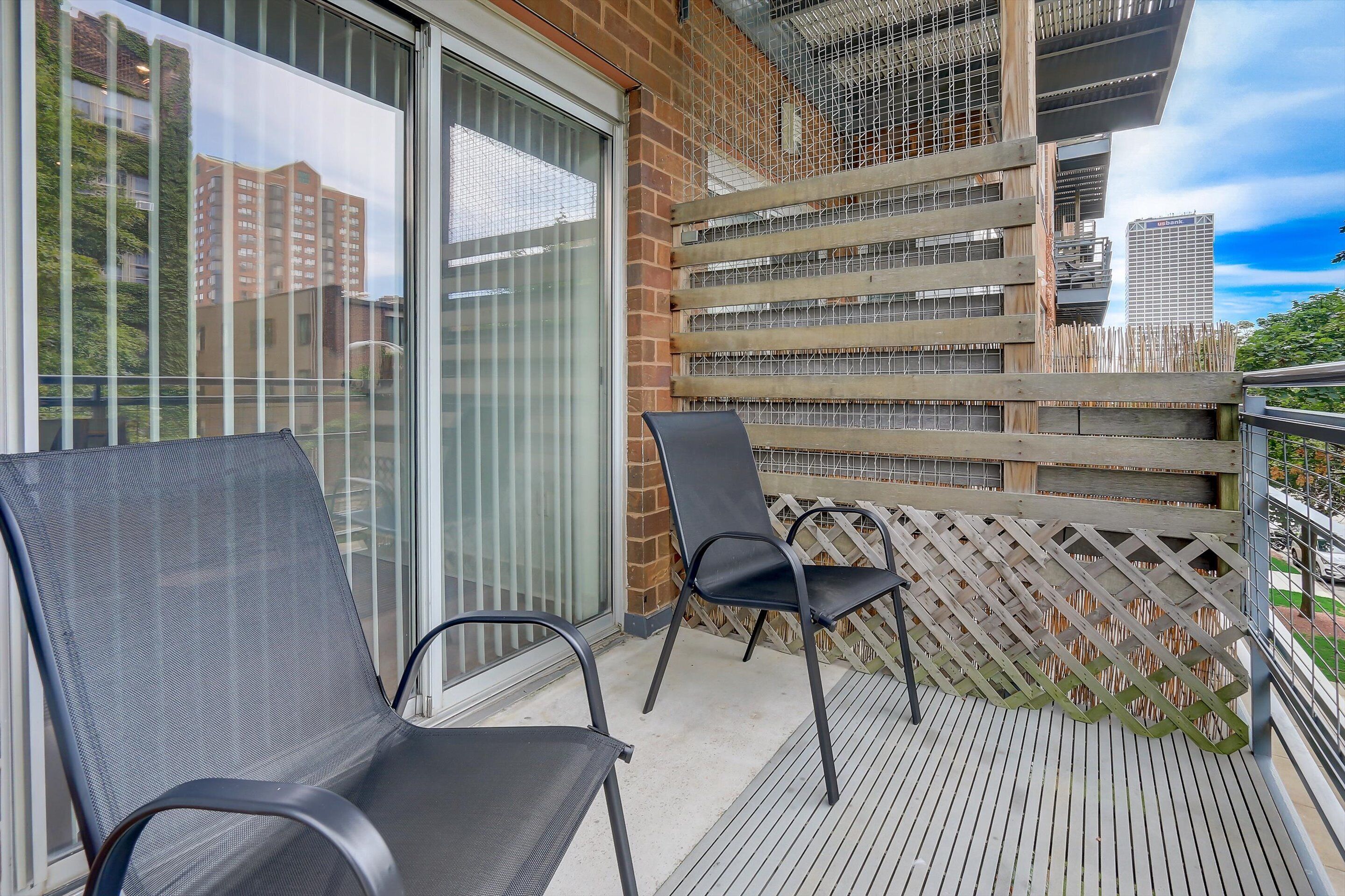 - "Enjoyed the stay in this studio during my short time in Milwaukee. " - "Great stay!" - "Great location. Very clean and safe. One draw back was it was windy and the patio door whistles all night long. " - "The apartment itself was fine. Clean. Just very poorly appointed. The bathroom only had 2 bath towels. No hand towels or bath mat. One washcloth. This for 2 people for 3 days. Only one roll of toilet paper. We went out and bought some. Also only 2 forks! Very old and uncomfortable furniture. Also the space is very dark. All in all just ok"
