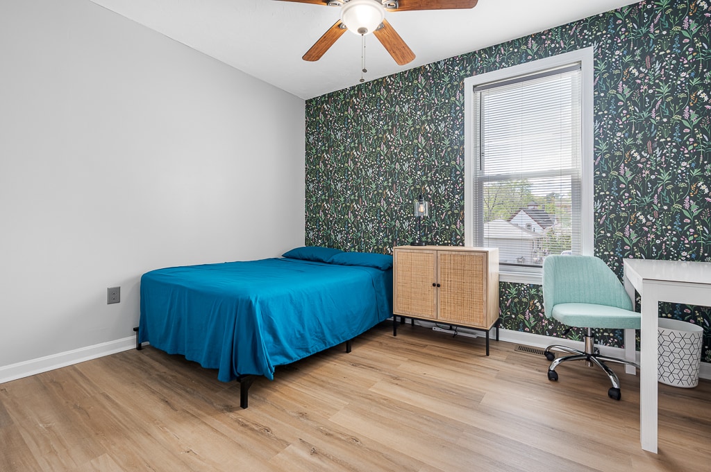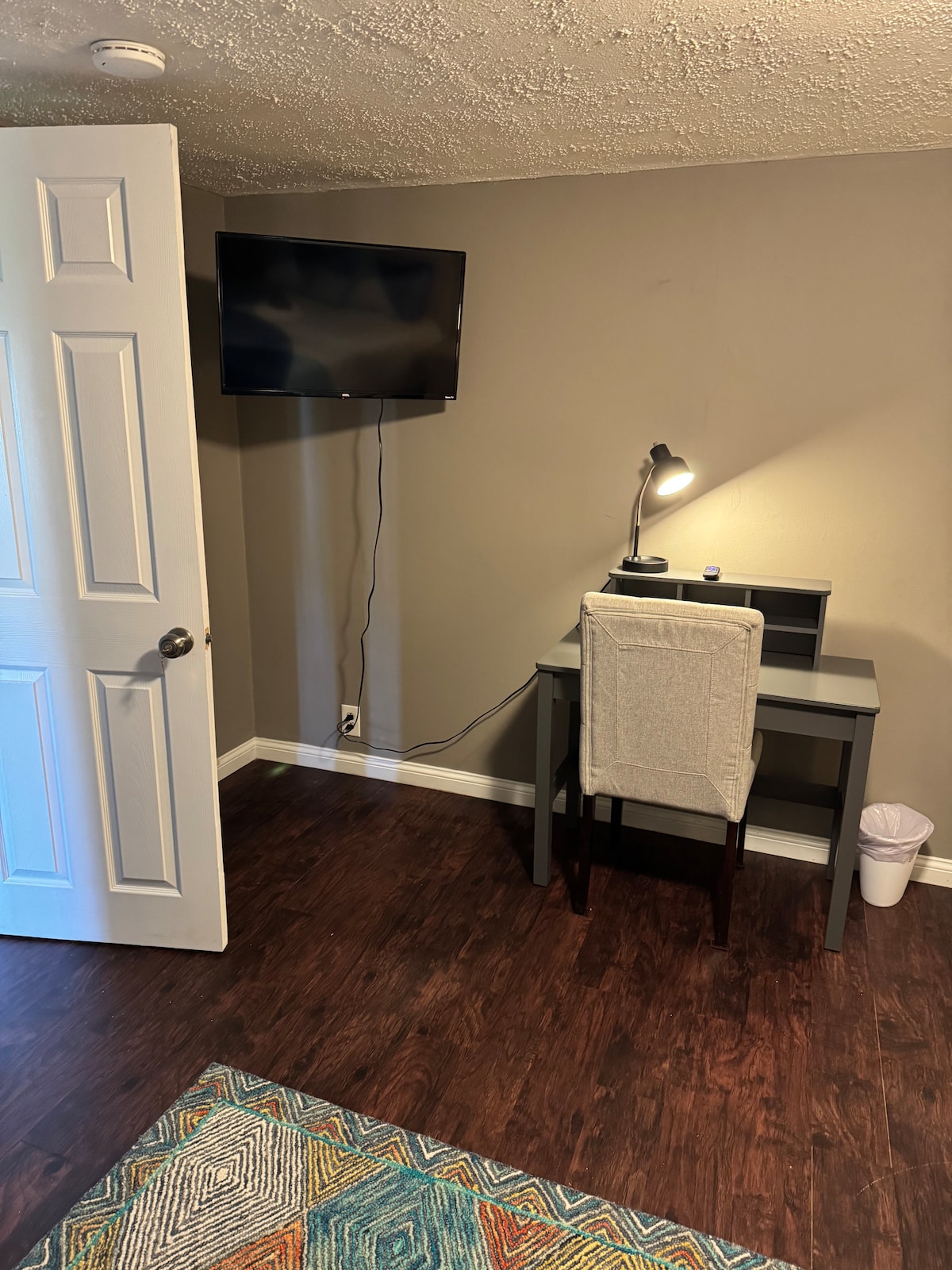 Your private bedroom Has a large closet, Good sized desk complete with office supplies, extra blankets, heat, fans, Flat screen tv with amazon fire stick, fresh sheets and towels, and under bed storage.