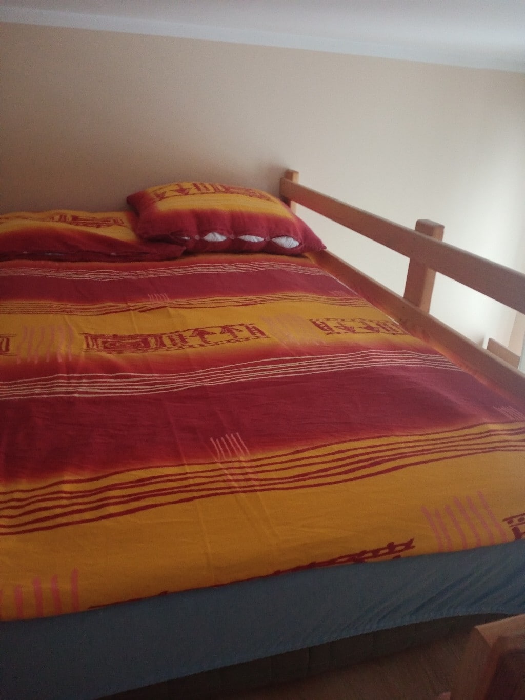 Lockable room, comfortable bed, bed linen, set of towels, wardrobe with hangers, extra blanket and pillows.