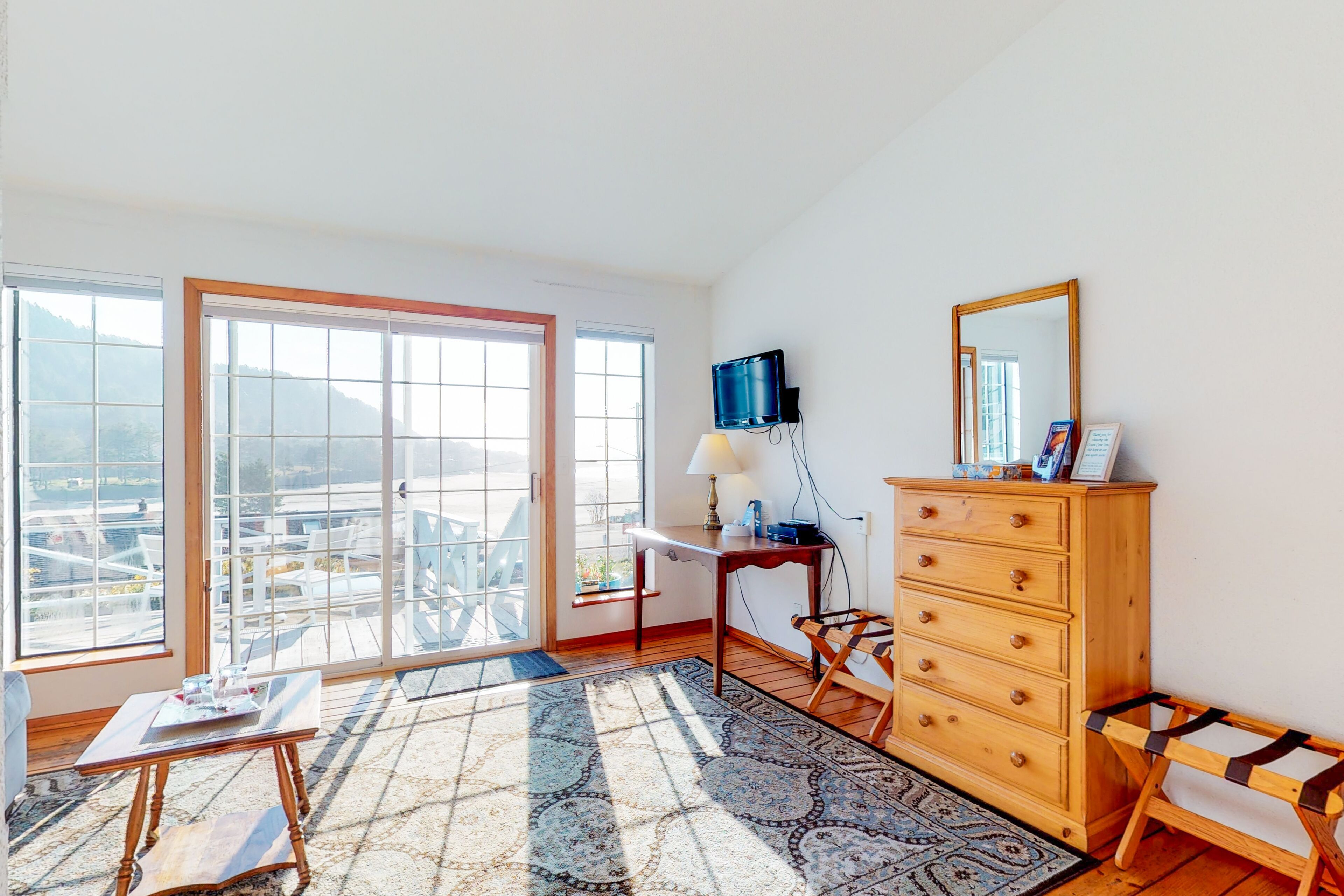 - "I enjoyed my room which provided a view of the ocean and was within walking distance of downtown. It was well appointed and clean and price very reasonably for my stay. I would stay here." - "Comfy and easy stay. Quick access to everything in town. Great deck when the weather is nice." - "Close to everything downtown. Some trouble with the internet. Very clean." - "When both me and my partner looked this place up there was a photo that showed the beach within walking distance, and it also said there was a beach within a3 min walk. That's untrue unless you count here tiny piece of land called "whale park" as a beach {which google does} The access to the beach was there stair you have to drive too across the bridge, if u look out from the rental room u an see it from there. as a Disabled person i was looking forward to be within walking distance of the beach and was kind of bummed out from the untruthfulness of that photo. When we went back to the website mind you the photo seemed to be removed. Other than that you have a sliding doors, so if you wanna listen to the beach waves you will have to put a wooden dowel in the slid path to keep the door from being able to slide all the way {if you worry about intruders} and also the tv is TINY AF and you cant really see it from the bed either. If you wanna cook on the poach keep in mind there's no tables so you will have to bring a table and you bbq grill or cooker of some sort. also be carful of the railing one of them is very wobbly!! other than thoes issues our time was very peaceful, and relaxing, neighbors were quiet the town is quiet, i do not recommend going to shops/ restaurants they are hella overpriced. and the restaurant right next door is not only expensive but has a gratuity included{had no idea} and will prompt for a tip still. Ice-cream shop is great tho!"
