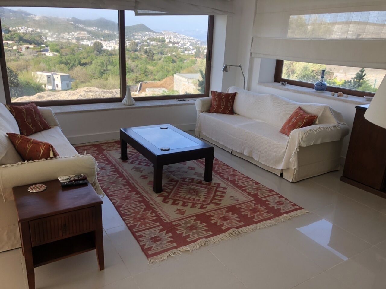 The flat is a tranquil, light and airy, spacious apartment with amazing views, tastefully furnished and offering an immediate feeling of relaxation due to the incredible aspect. It's perched up high on a rocky outcrop with panoramic views over a verdant valley with views towards the sea and unspoilt mountains. Despite it's tranquil location, Yalikavak Marina and town and many beaches can be reached in 5 minutes - the waterpark is even nearer.
