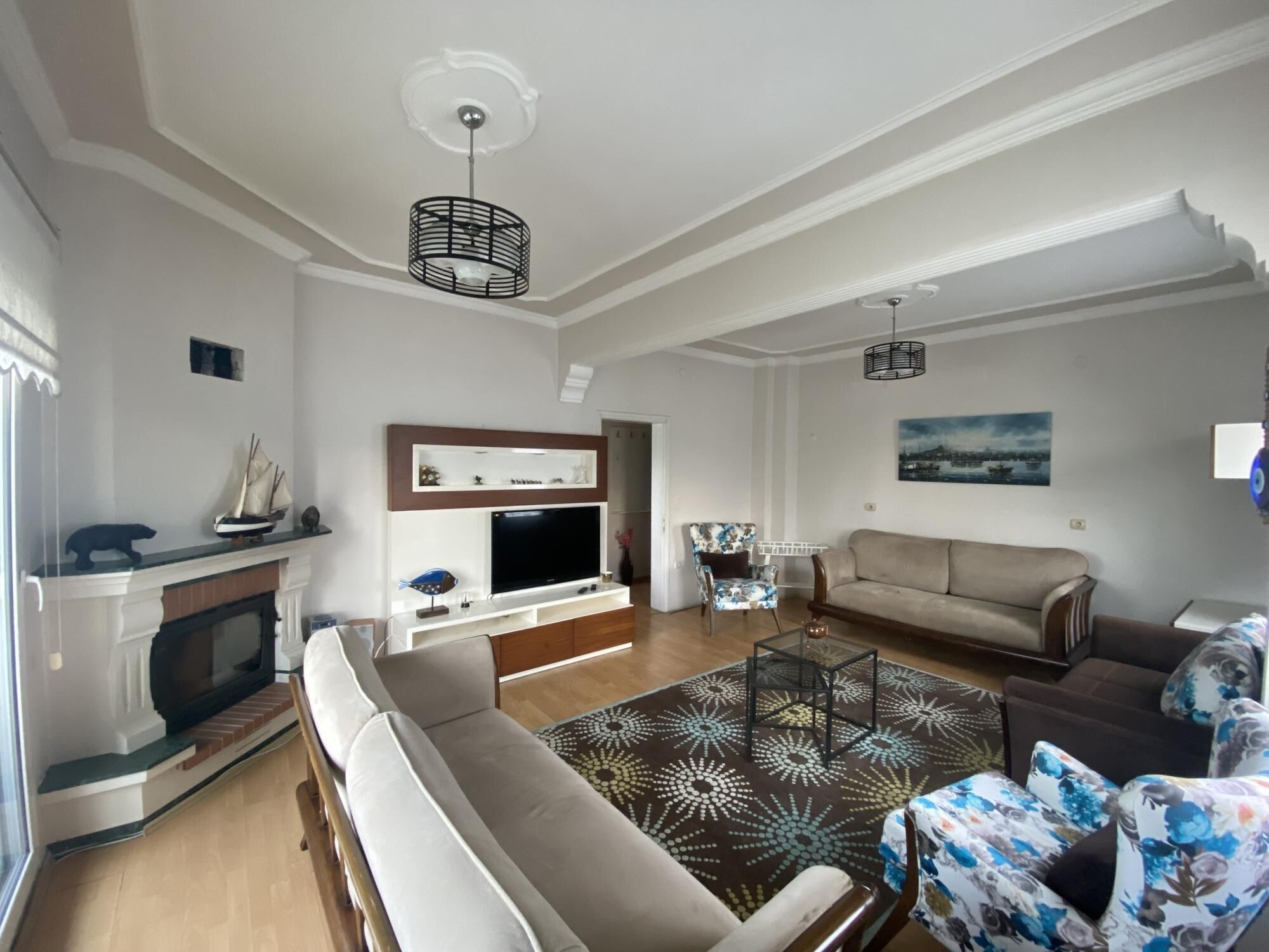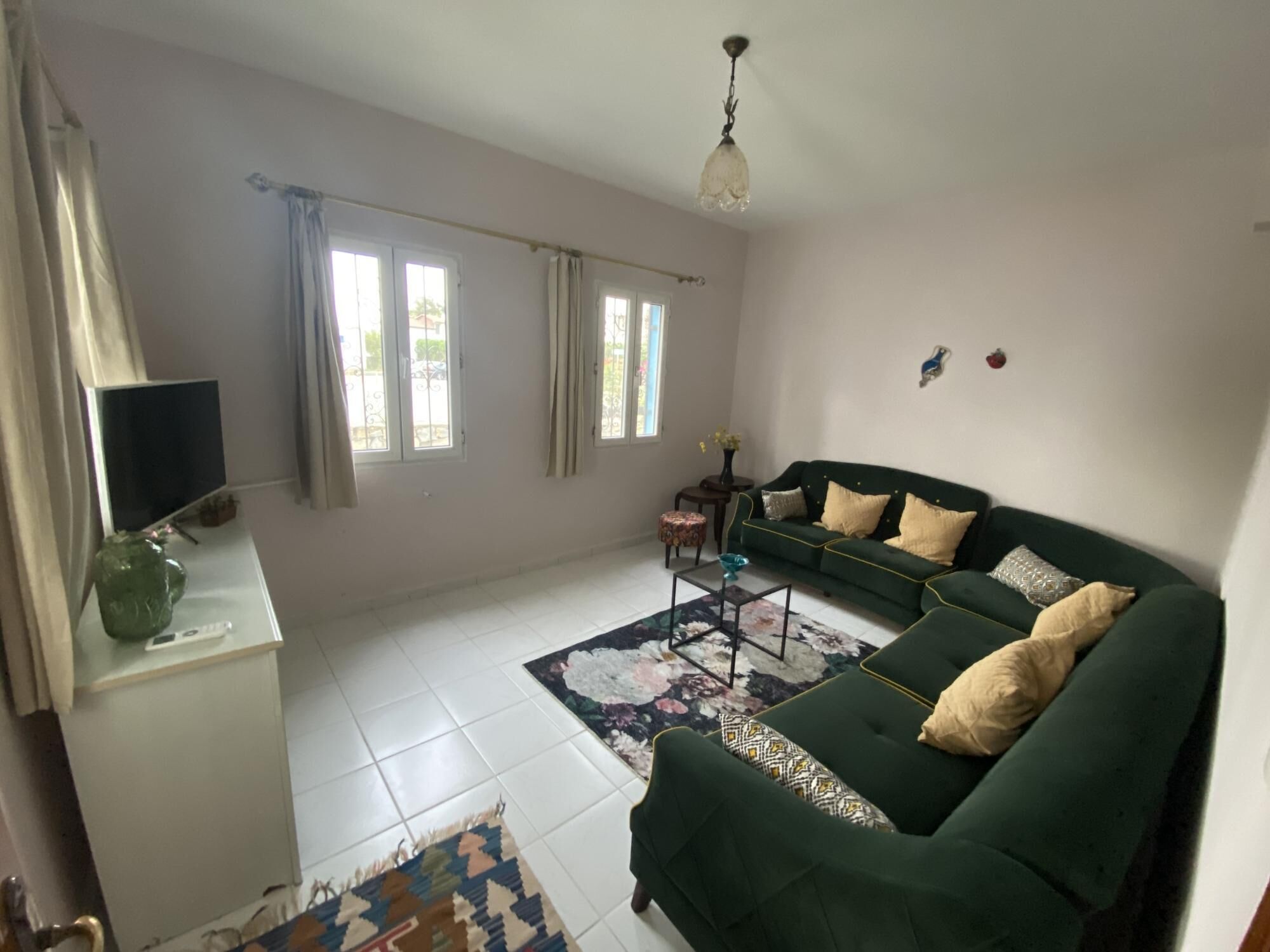 The apartment is located on the second floor, there are 2 single beds in the next room to meet you in the magnificent and beautifully designed living room and the kitchen at the entrance, and the other queen room has 1 double bed and bathroom. There is also another bathroom, there is a washing machine and other items here.