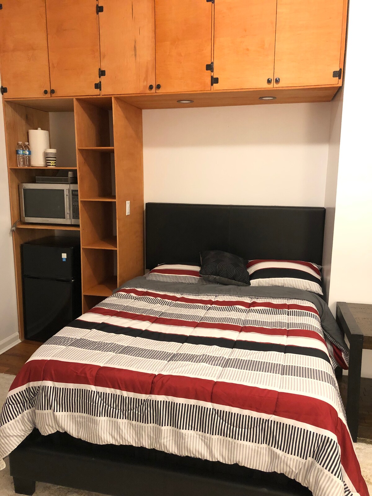 The kitchen can meet your basic cooking needs, with a stove, oven, microwave, full refrigerator, sink and a table that can seat up to four. It features a newly renovated bathroom with new toilet, medicine cabinet and vanity . The bedroom has a full bed with plenty closets and a television equipped with Amazon Stick to watch TV. WiFi is available.. All utilities included, electricity, TV and Heat.