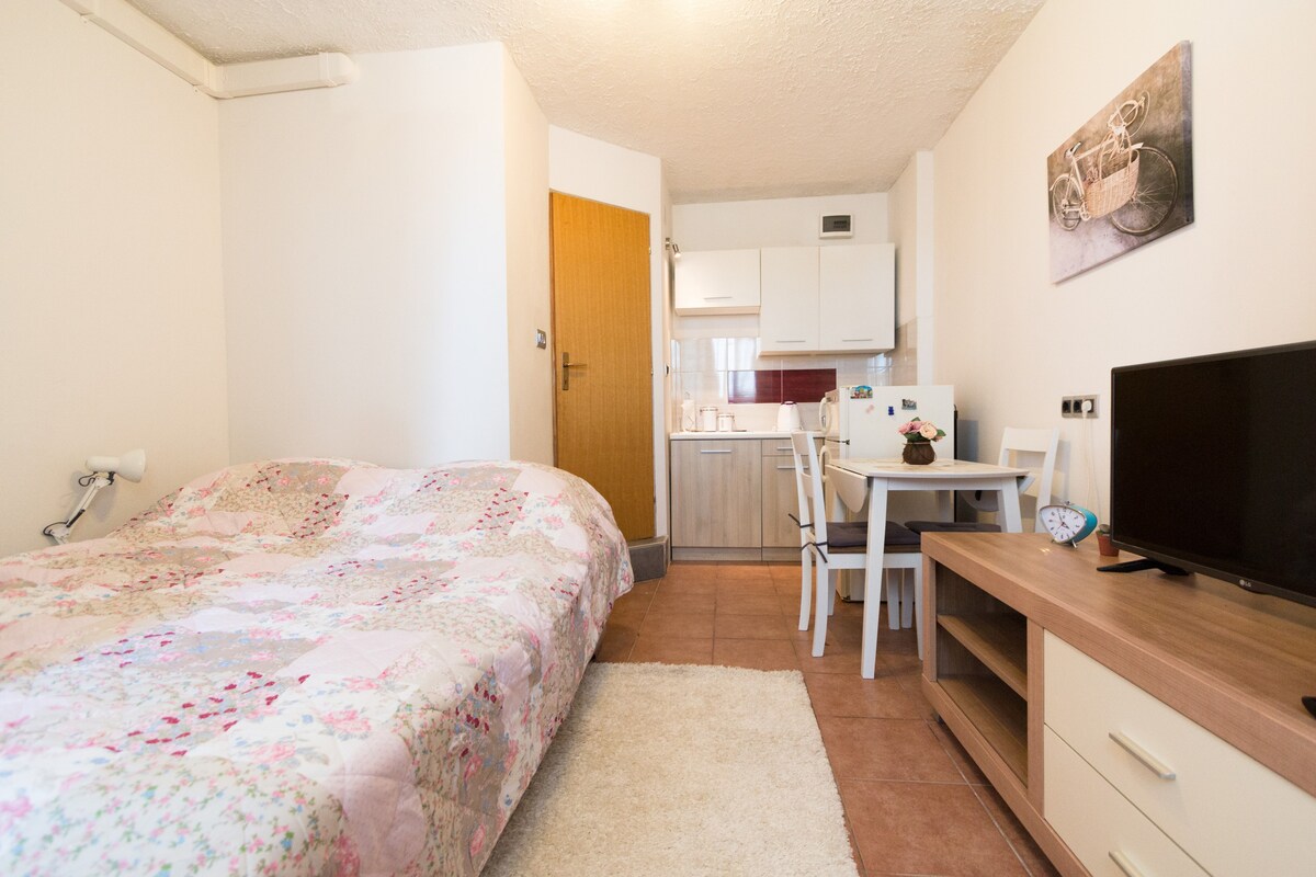 Welcome to our cozy beachfront studio! Offering a kitchenette, bathroom and a comfy bed. Located in front of the beach Borik.