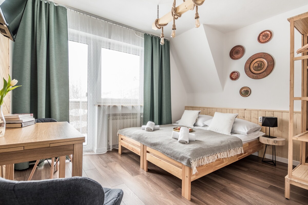 A cozy studio apartment with an area of 27 square meters located only 3 kilometers from the Gubałówka mountain peak. The interior of the apartment was designed to accommodate 4 people. It is perfect for a family of four, business travelers and groups of friends who want to spend a quiet holiday surrounded by nature and feel the specific atmosphere of the mountains. For those who prefer to spend their time more actively, there are also numerous ski lifts in the immediate vicinity - including Budzowski Wierch.