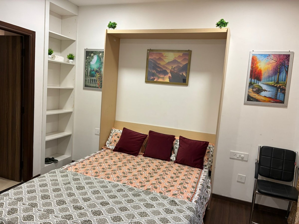 Vibe Loft is a modern studio apartment in Maya Garden Magnesia on the Delhi-Chandigarh Highway. Enjoy vibrant art, a cozy bed, sofa set, smart TV, balcony, kitchen with all essentials, and a spacious bathroom. Walk to Starbucks, McDonald's, Burger King, Uniqlo, Chroma, and fine dining at Romeo Lane—right inside the complex. Ideal for a comfortable, aesthetic stay!