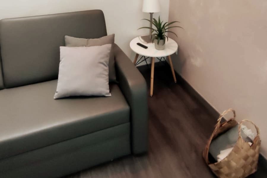 There is a living room with sofa bed (for the 3rd person), dining area and a TV with Magenta TV are available.