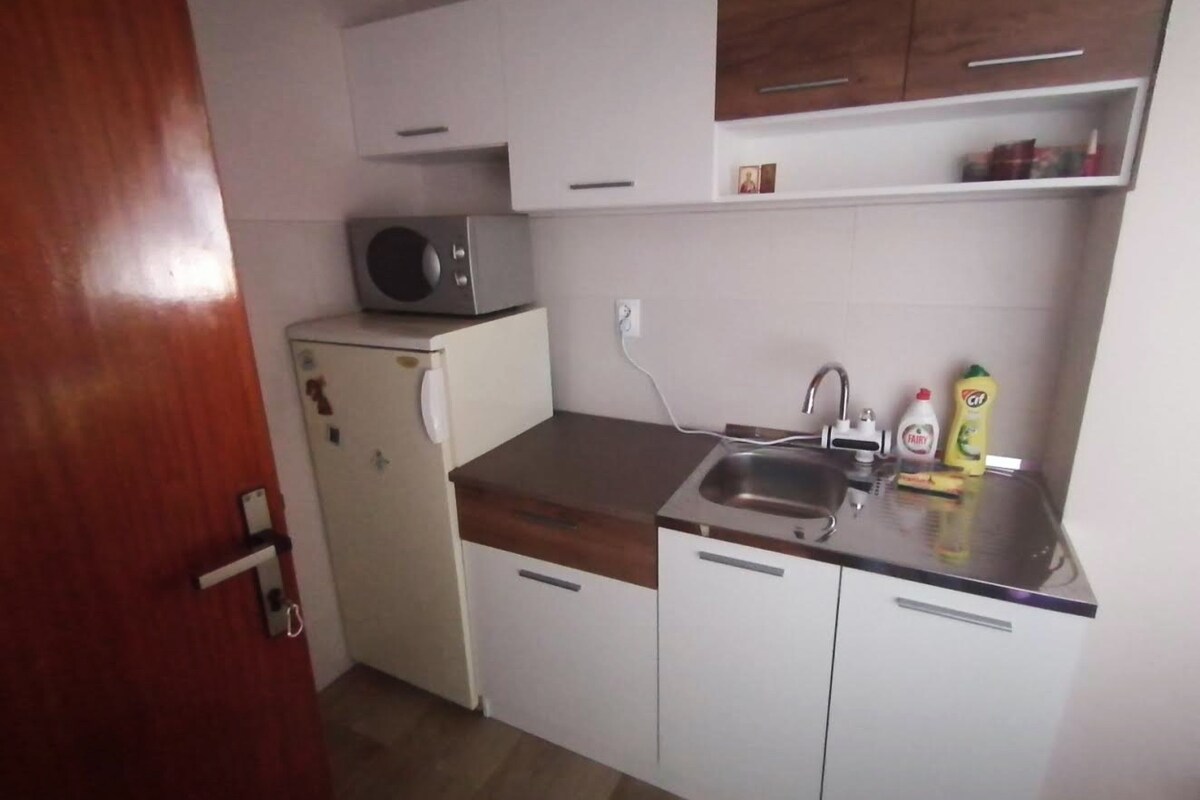 Cozy and fully equipped, fully renovated, studio in apartment building in a quiet street overlooking the backyard of the building, just a stone's throw from the main road that leads to Zlatiboro, Montenegro and Bosnia. Public parking available in front of the building. The building also has a well-stocked store, not far from more restaurants and bakeries.