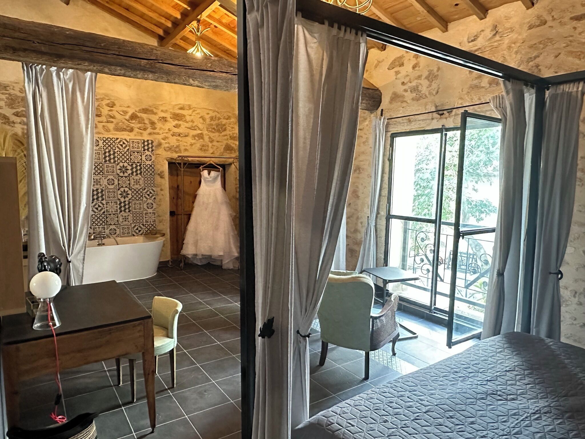 with the room you have access to the main kitchen, the living room, the 2 terraces.
