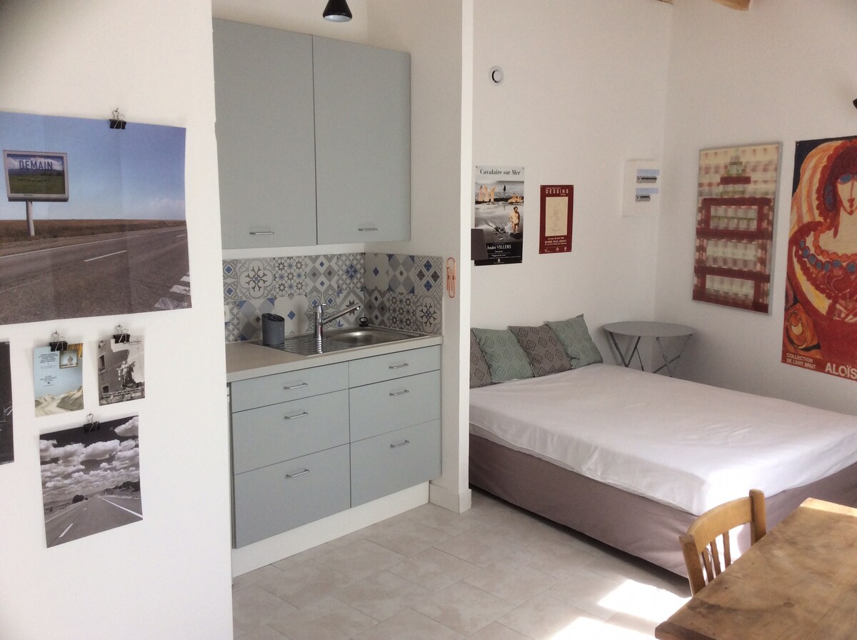 Nice room equipped with all comforts: kitchenette, air conditioning, washing machine, office space / meals .. I am in a residential area and very quiet. I have a dedicated parking space and a separate entrance and a terrace. Located just 18km from Aix and 20km from Marseille, 11km from the airport and 20km from Tgv d'Aix station, 30mn blue beaches, 10mn wine route, 40mn Avignon, Luberon, Camargue, Alpilles, Calanques. Strongly recommended car